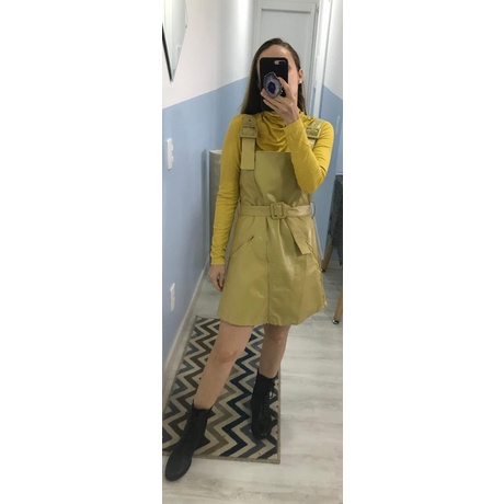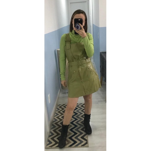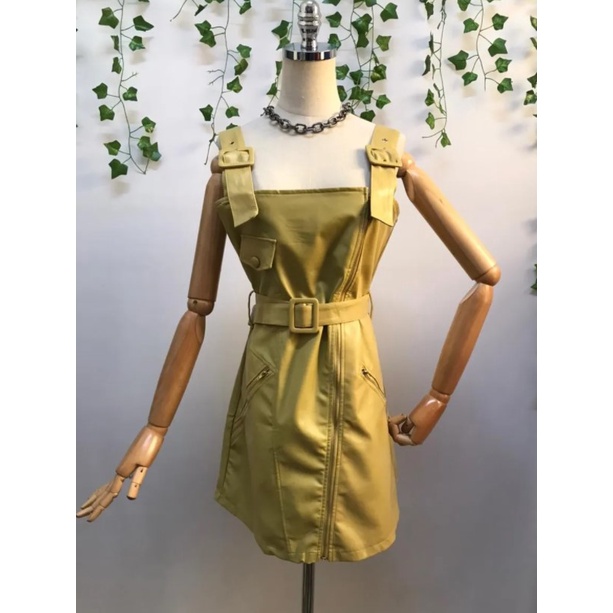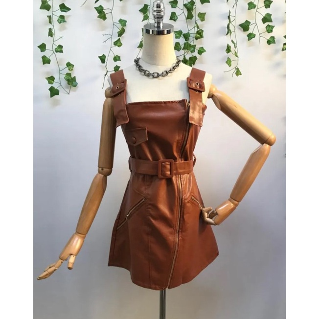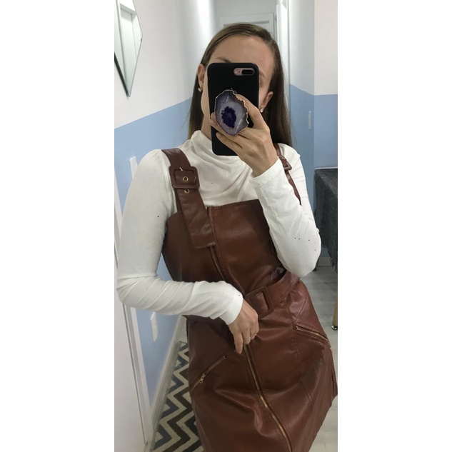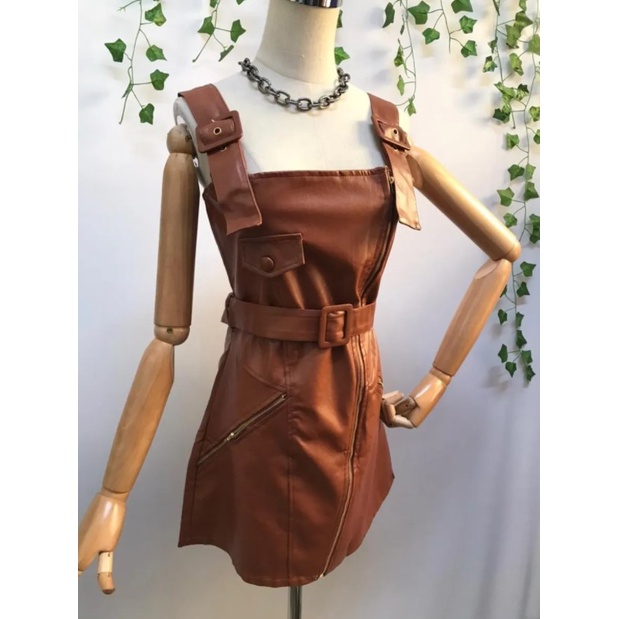 Vestido Courino Couro Eco Zíper Tubinho Fivelas