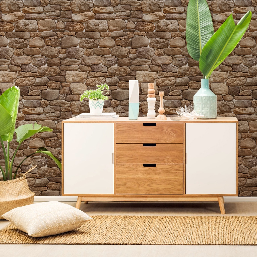 Papel de Parede Pedras 3d Marrom Rústica Vários Tamanhos PED65