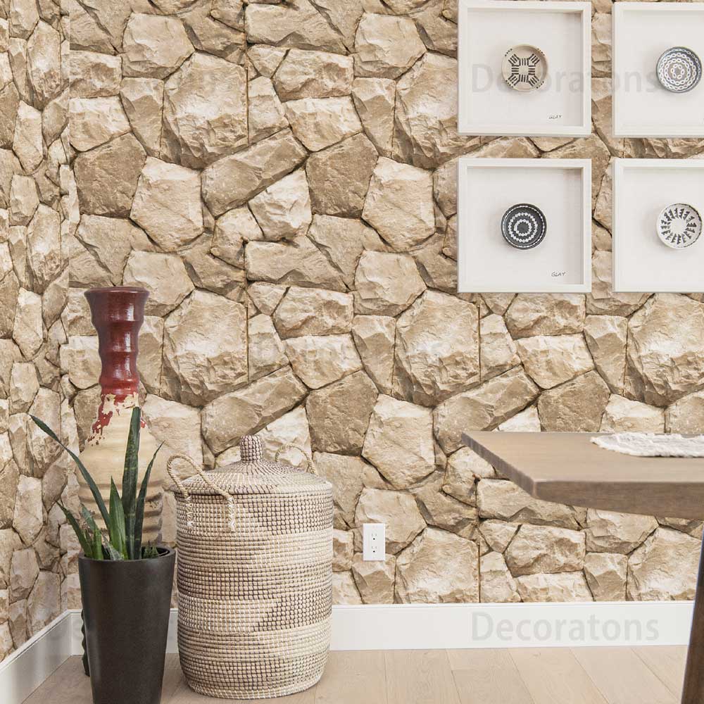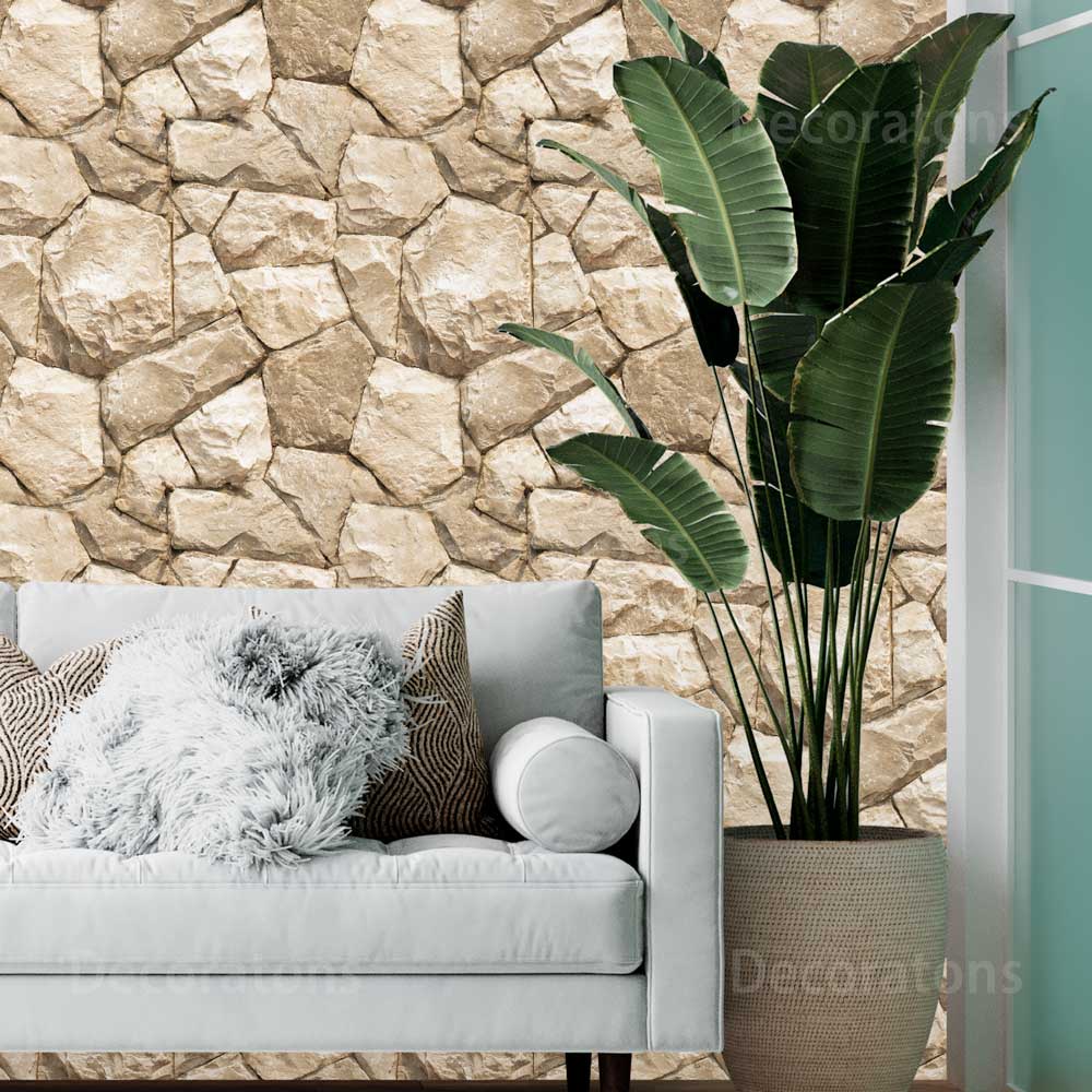Papel de Parede Pedras 3d Bege Rústica Vários Tamanhos PED87