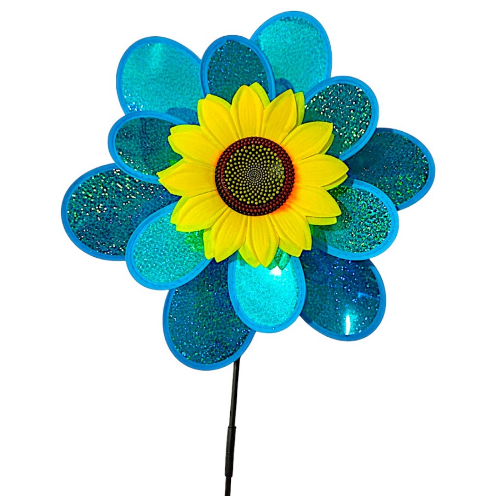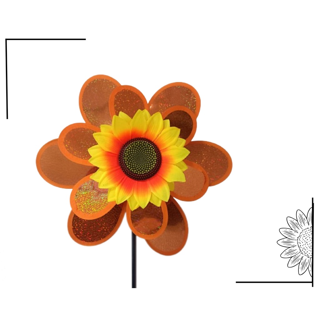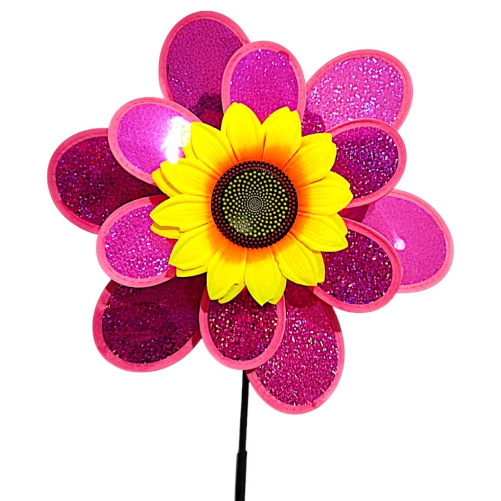 Catavento Girassol Duplo Jardim Varanda Decoração Com Glitter G