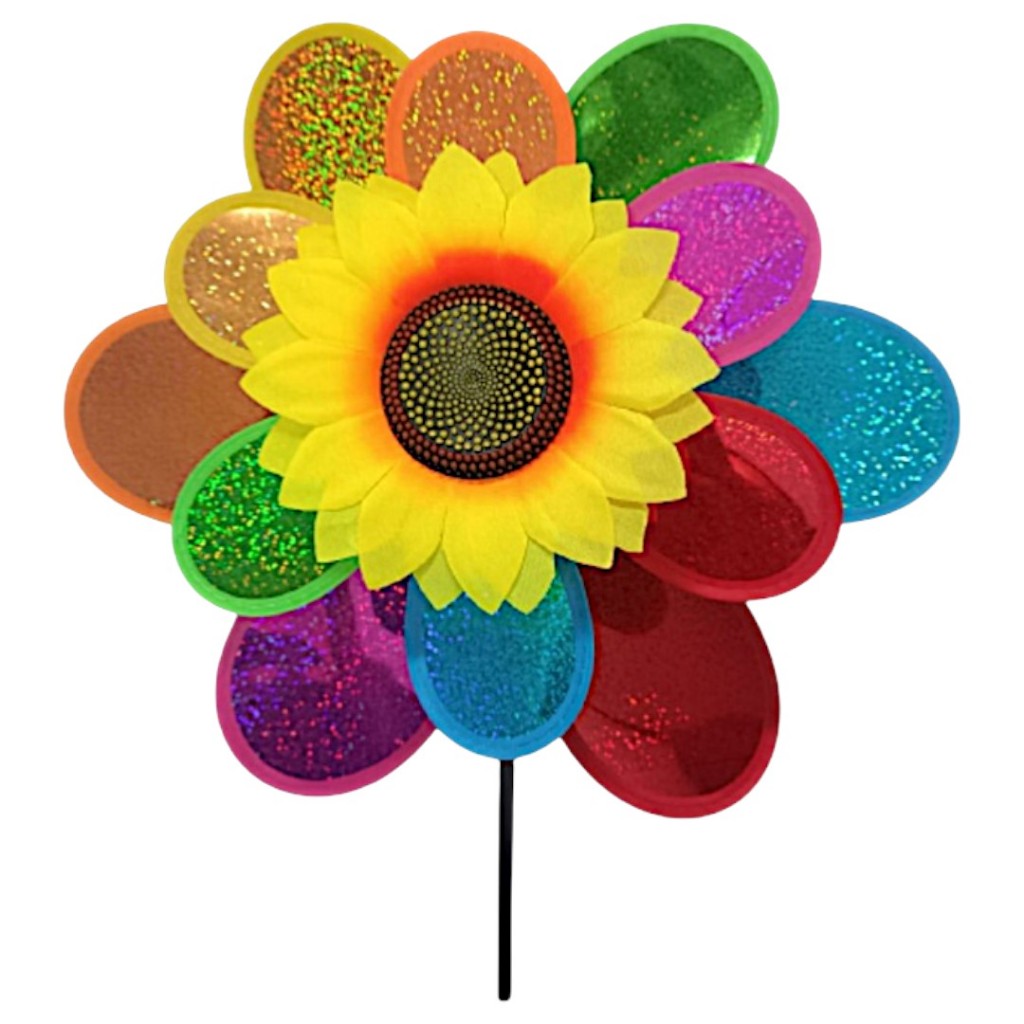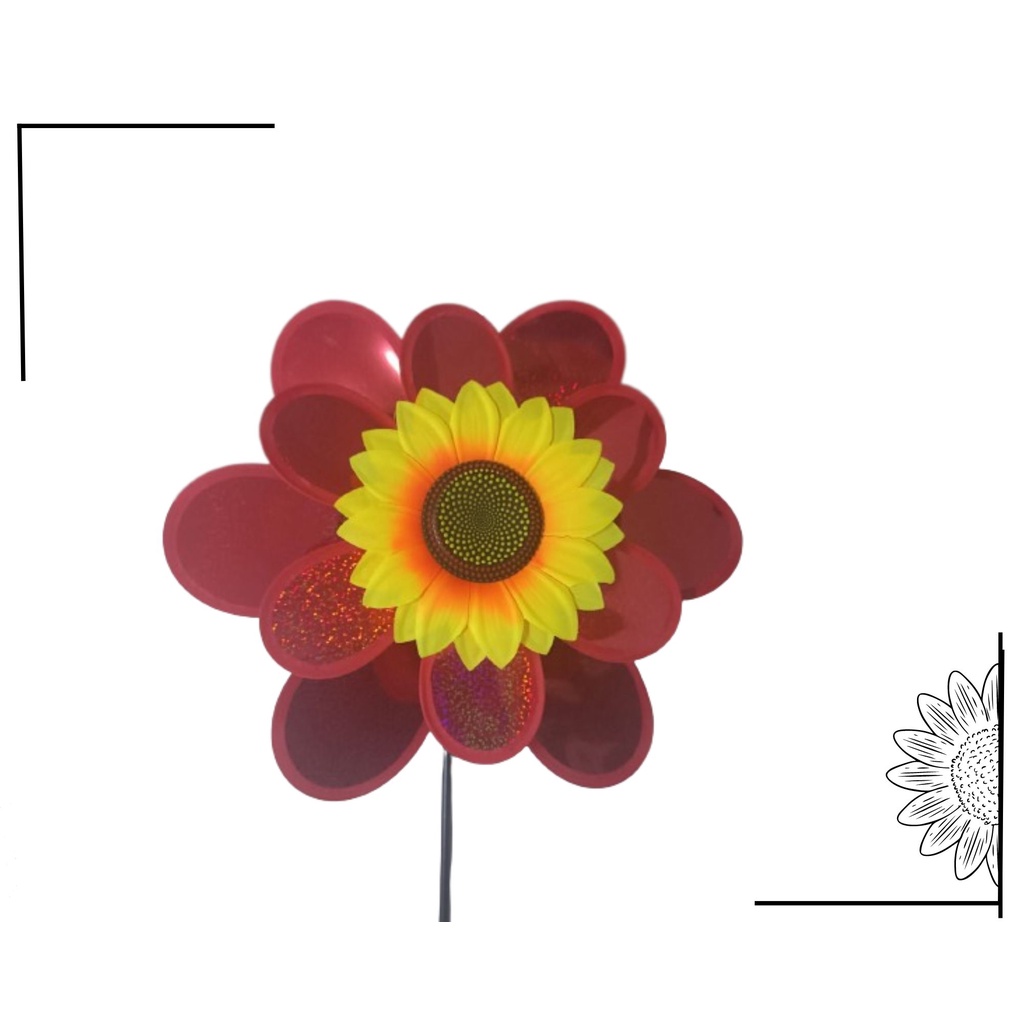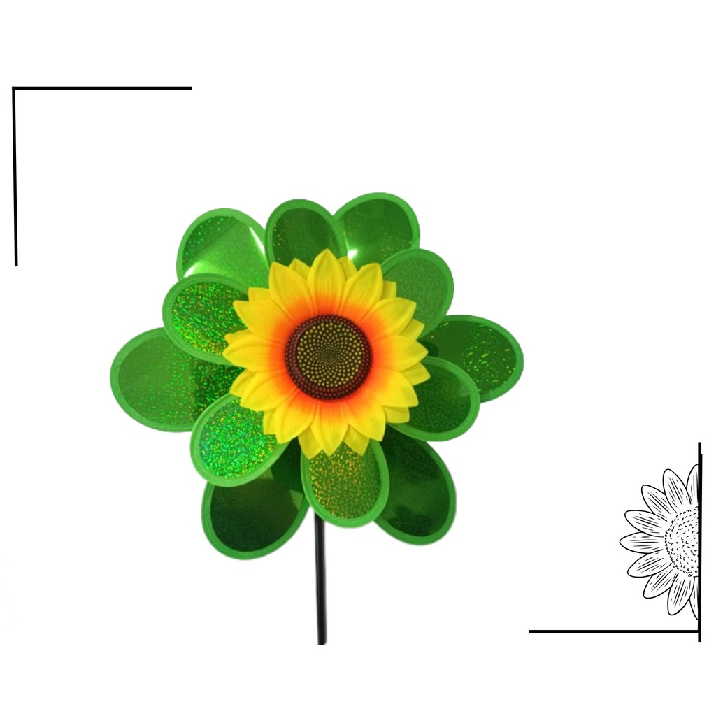 Catavento Girassol Duplo Jardim Varanda Decoração Com Glitter G