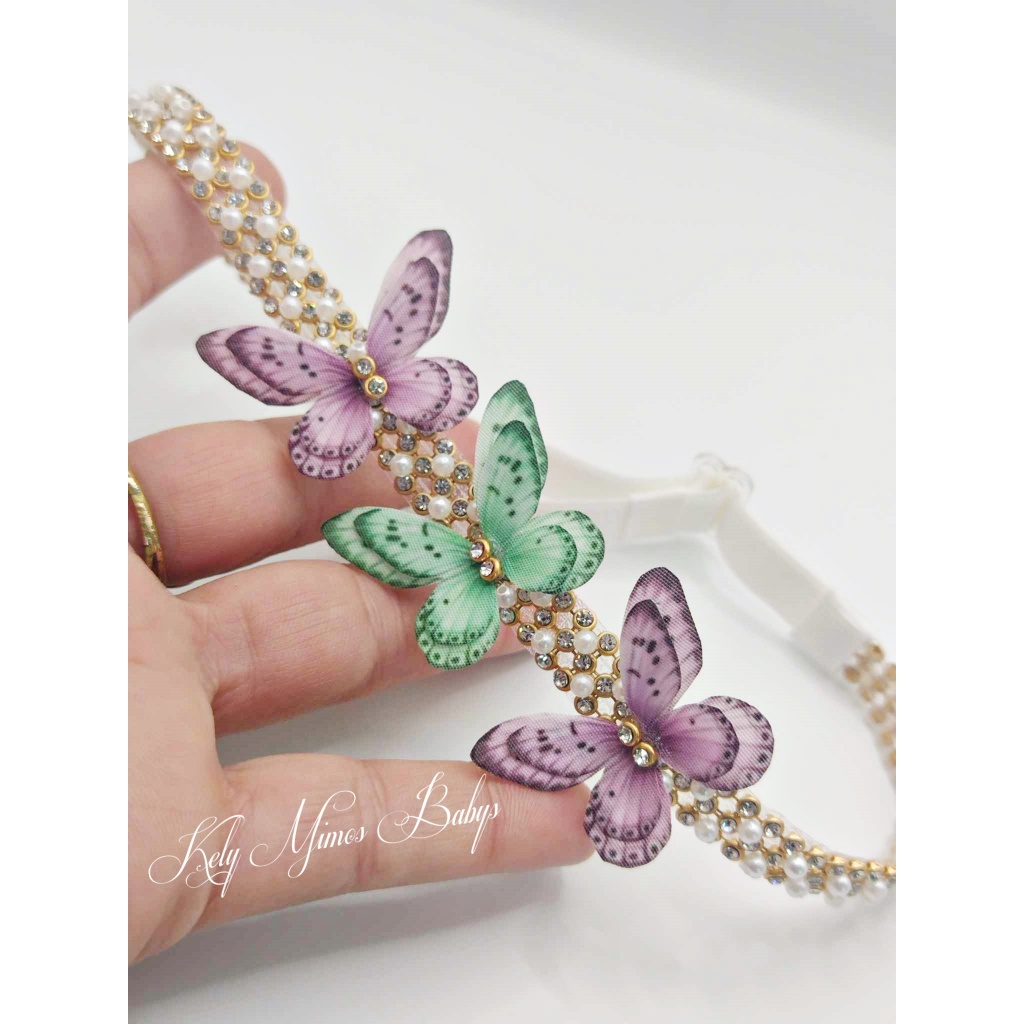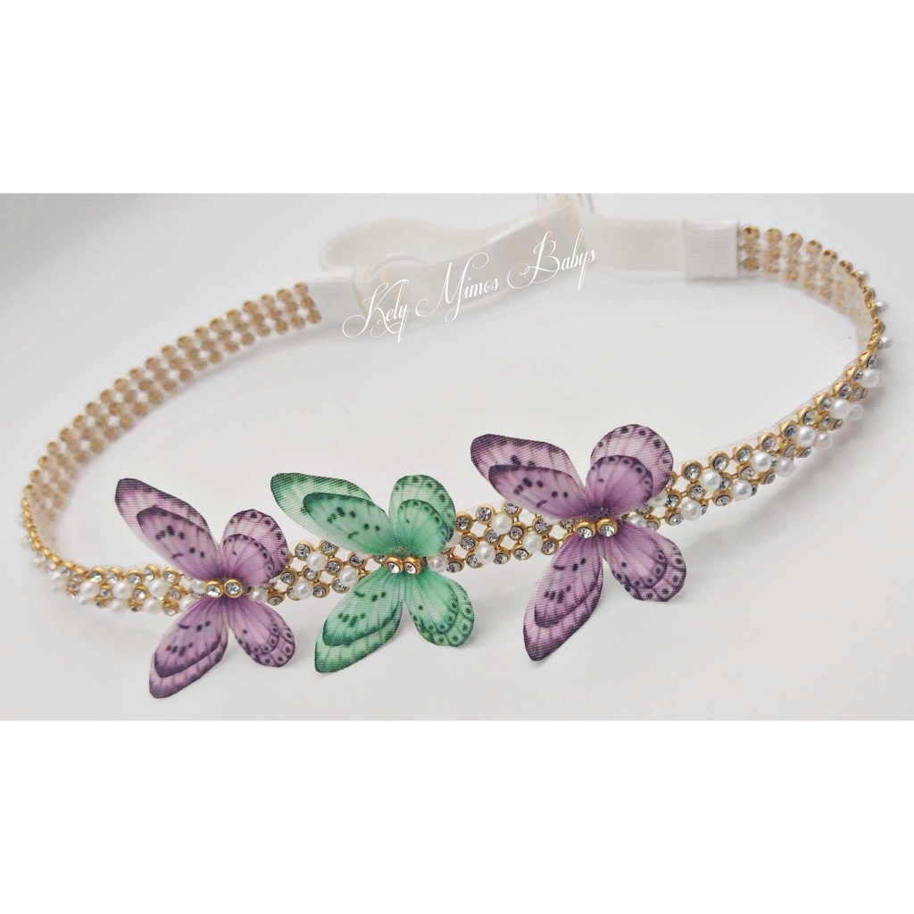 Headband Luxo Jardim Encatado-Faixa para bebês- faixinha borboletas mini perolas