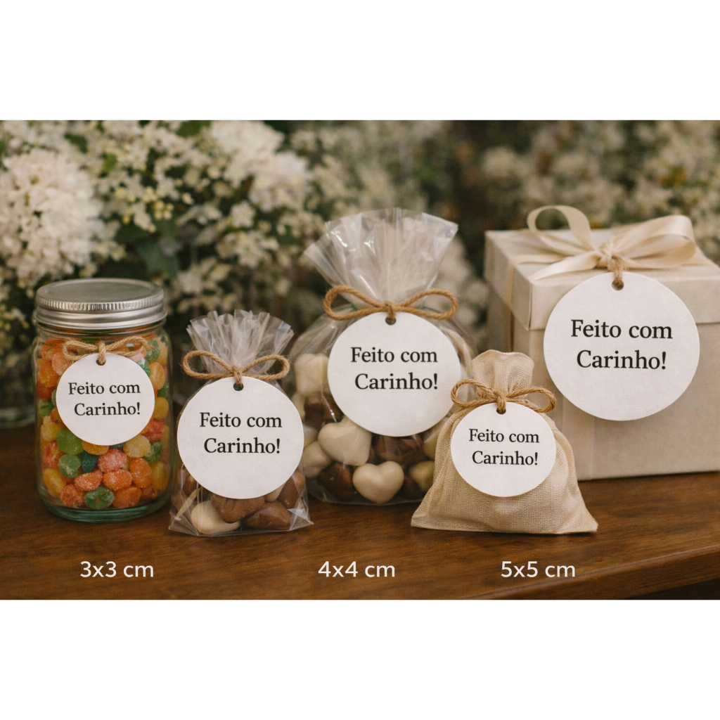Tag Branca Redonda PERSONALIZADA Com Cordão Juta Sisal 50 unidades