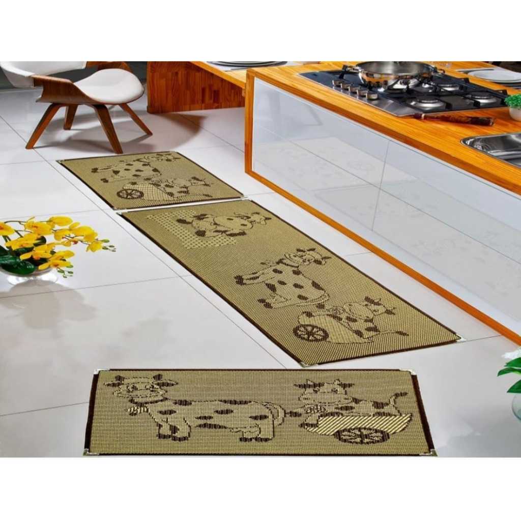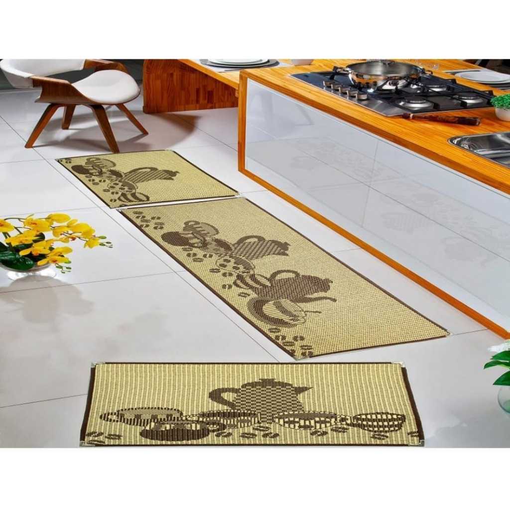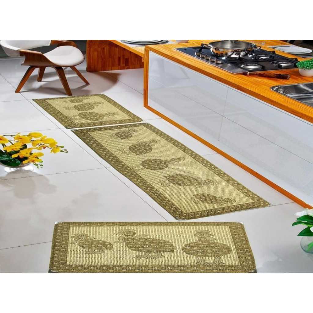 Jogo Tapete Cozinha Kit 3 Peças Base Antiderrapante Sisal