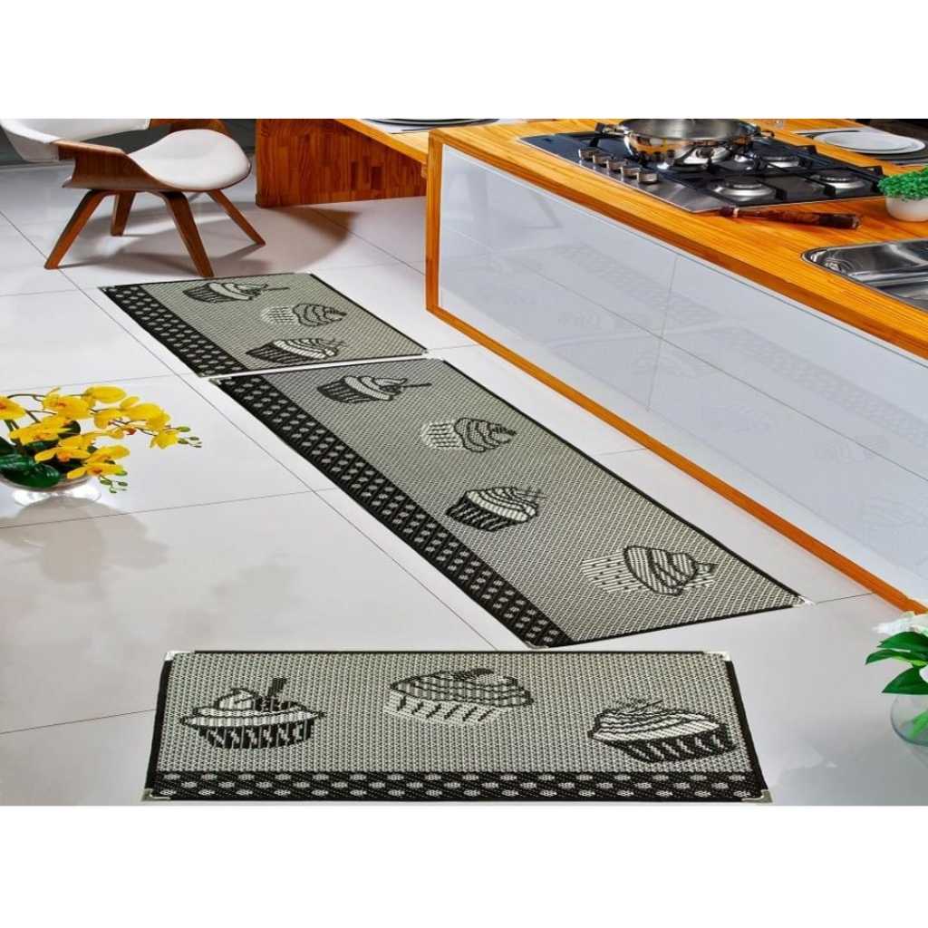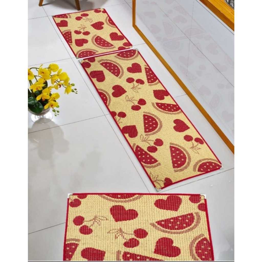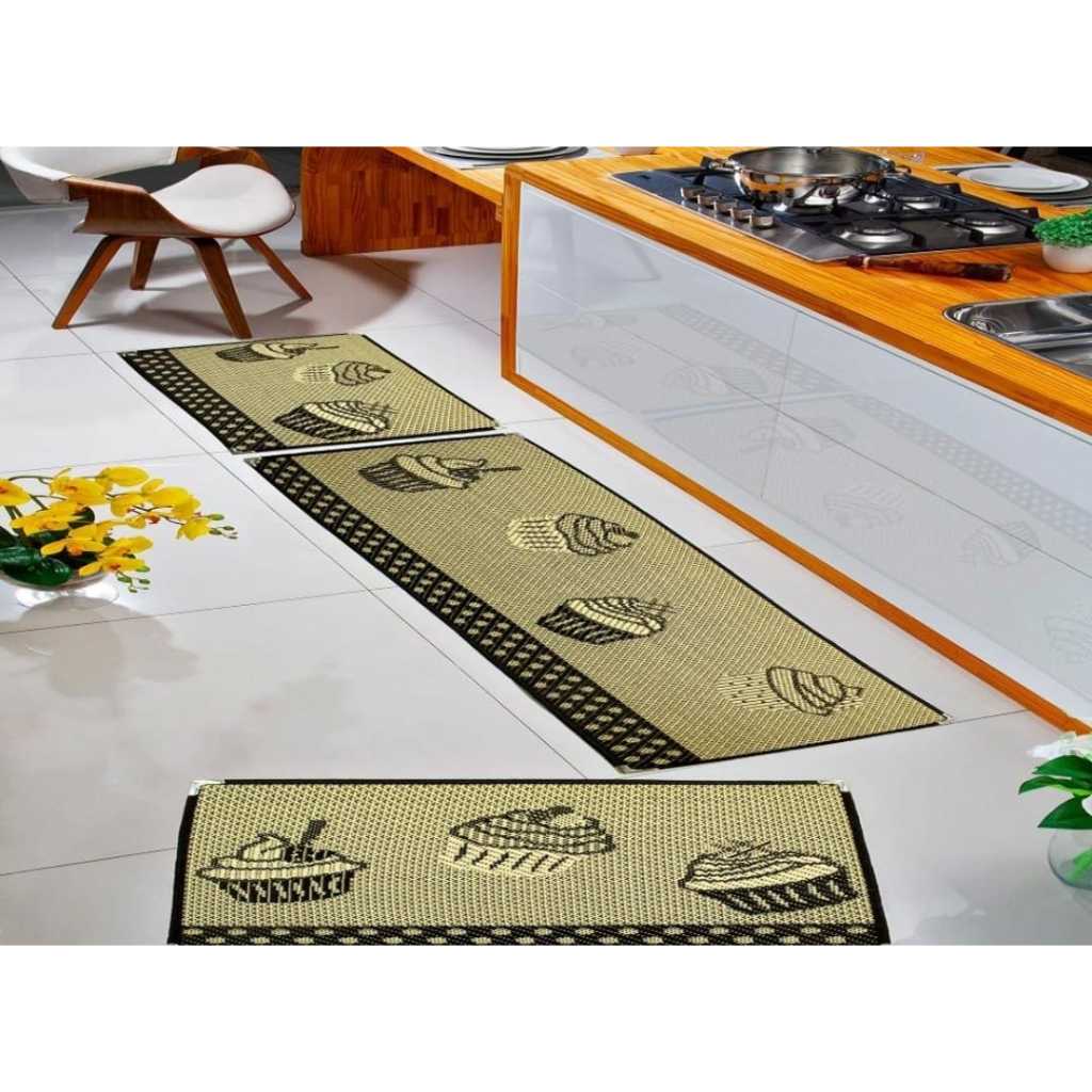 Jogo Tapete Cozinha Kit 3 Peças Base Antiderrapante Sisal