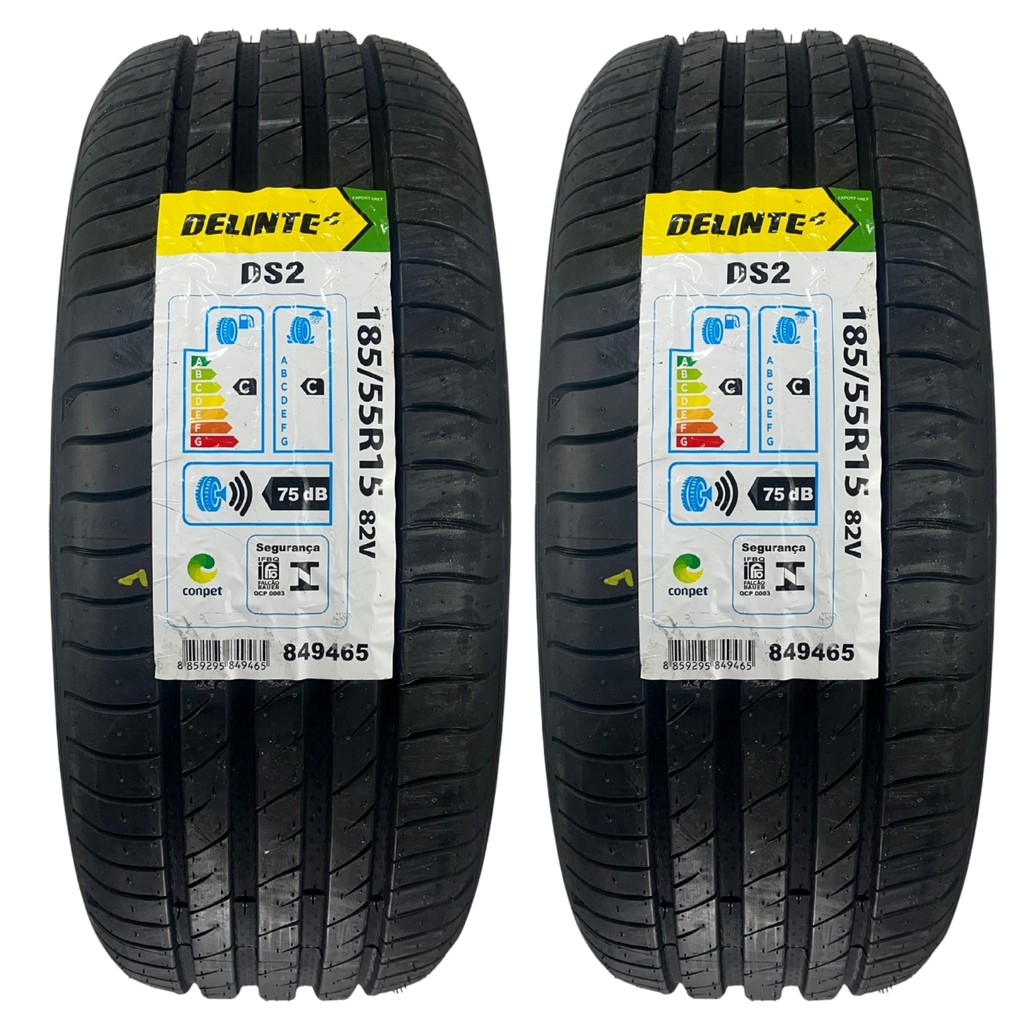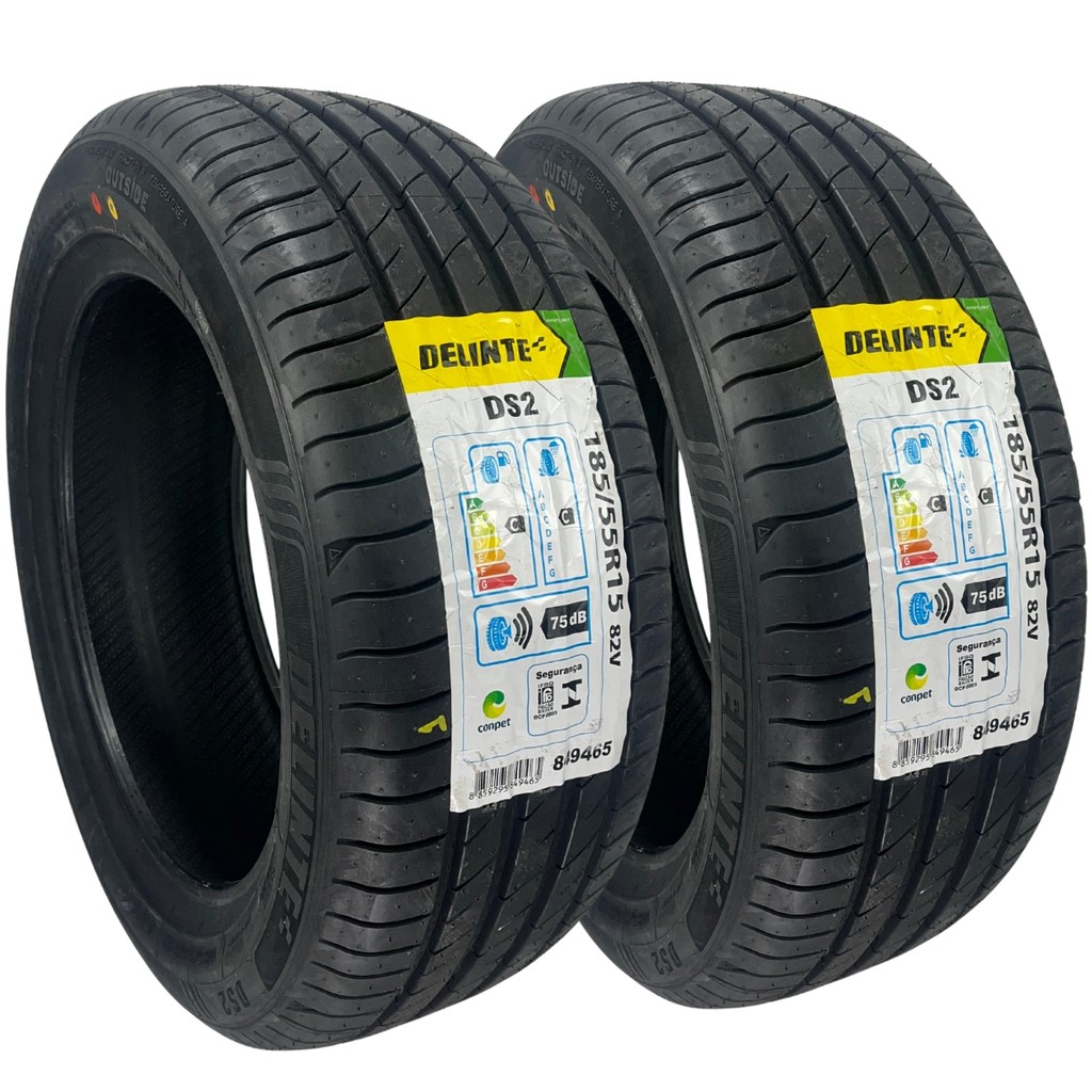 Kit 2 Pneus 185/55R15 82V Delinte DS2 Aro 15 Radial Chevrolet Spark Fiat 500 Mazda 2 VW Polo Aro 15
