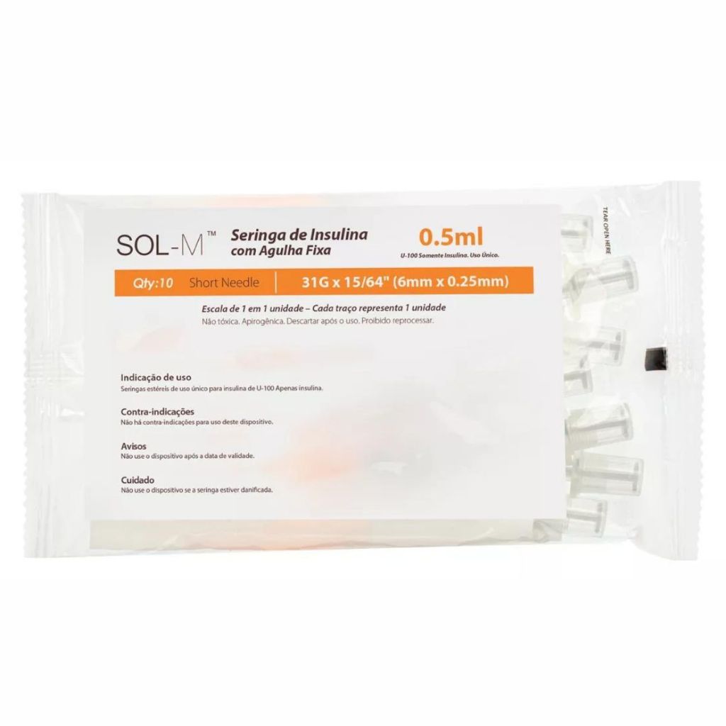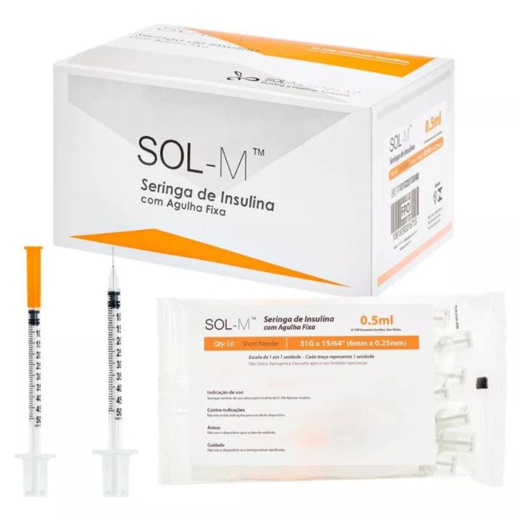 Seringa De 0,5ml Com Agulha Fixa 0,25mmx6mm Blister Caixa 100 Unidades