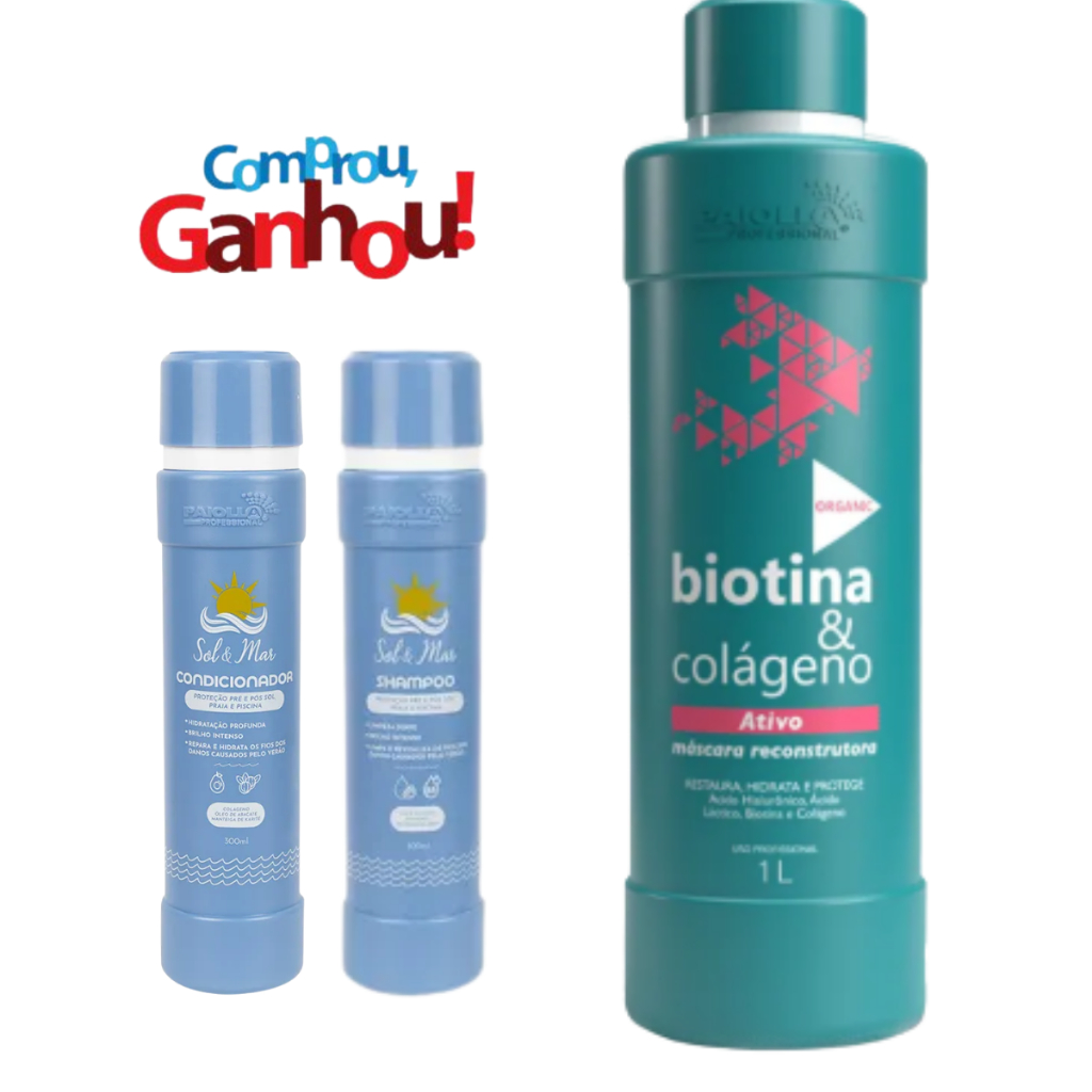 Selagem Paiolla Biotina e Colágeno Litro (Passo 2 ativo) + Kit Sol e Mar