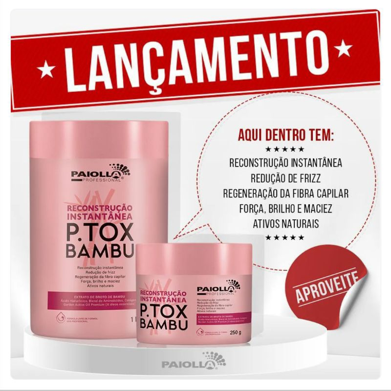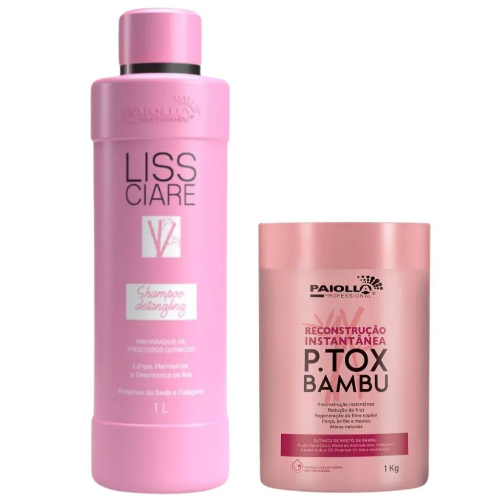 Paiolla P.tox Bambu 1 Kg (Reconstrução Instantânea) e Shampoo Paiolla Antiresíduos 1 Litro