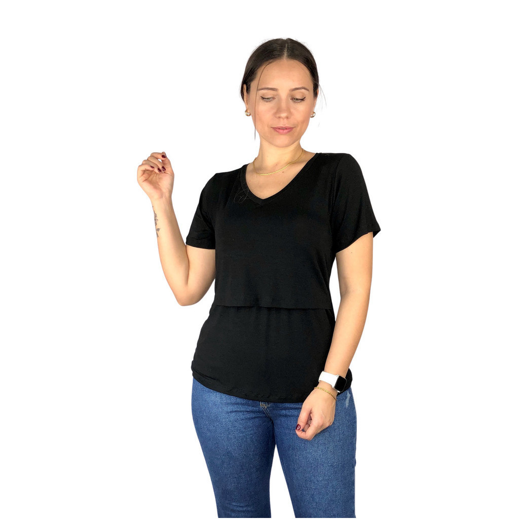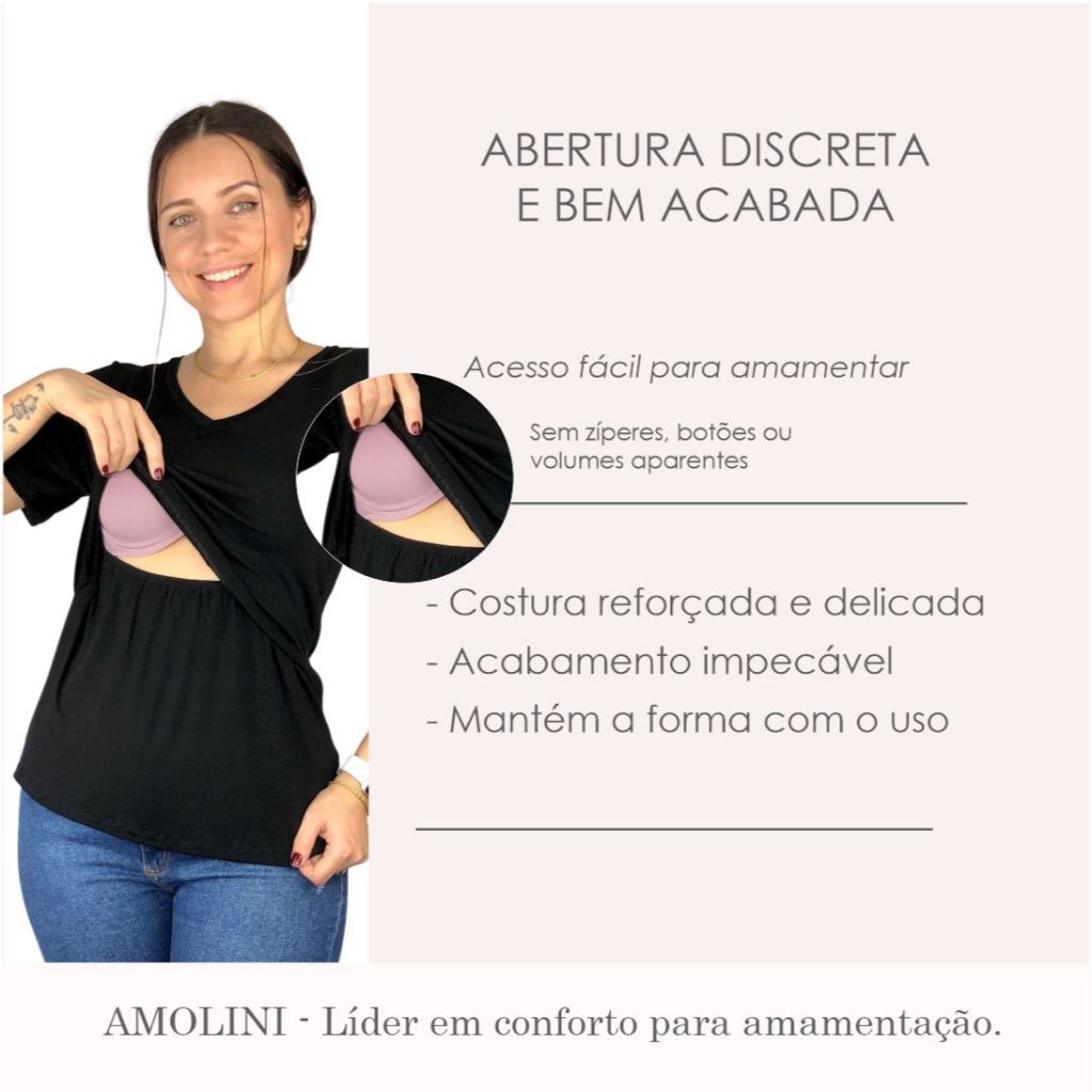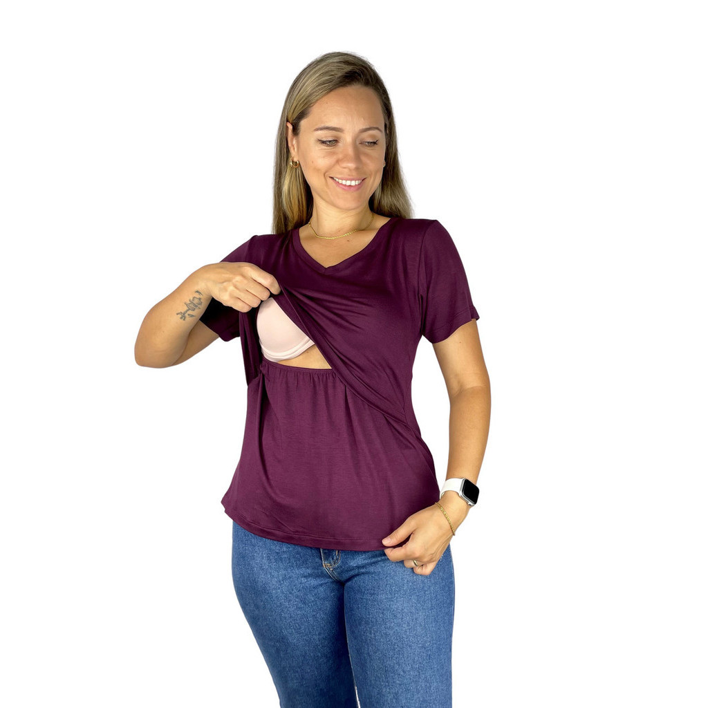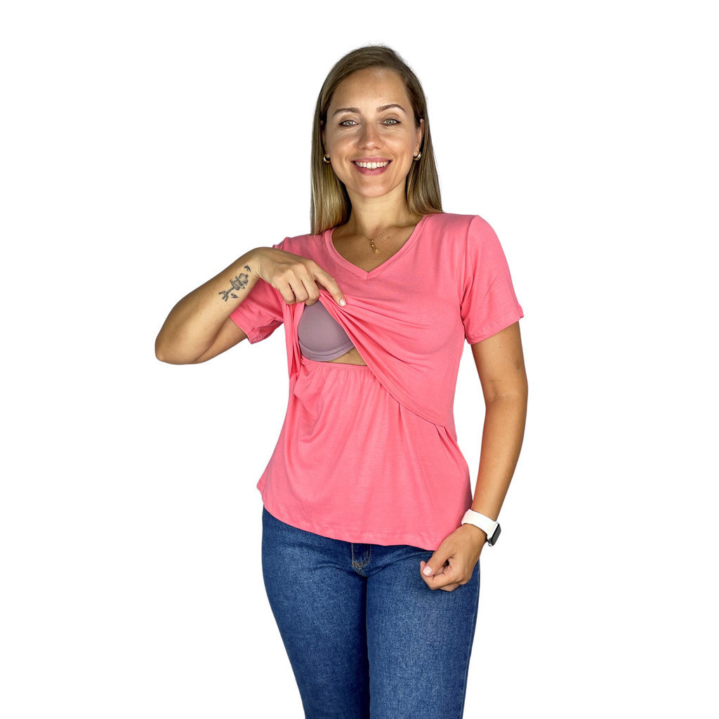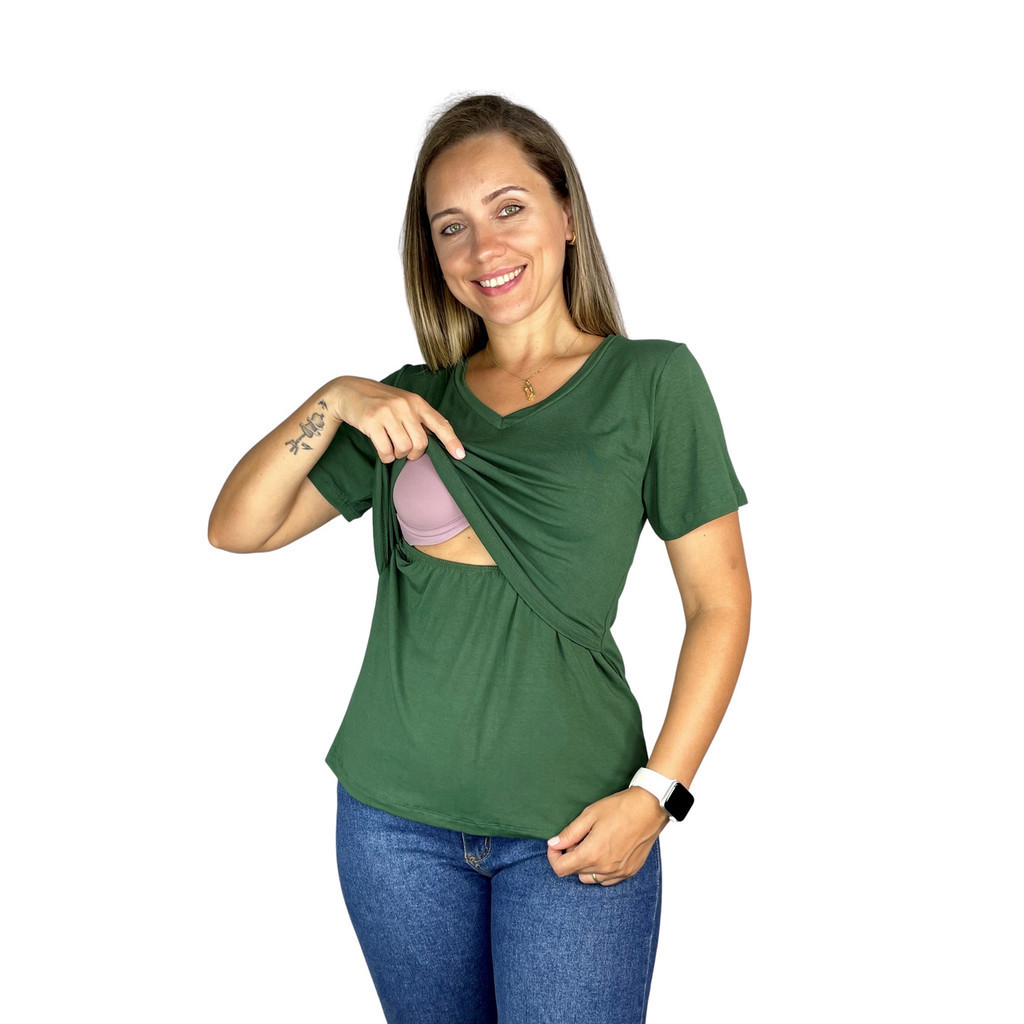 Blusa Amamentação Diversas Cores Viscolycra Premium Manga Curta Gola V T-shirt Grávida Maternidade