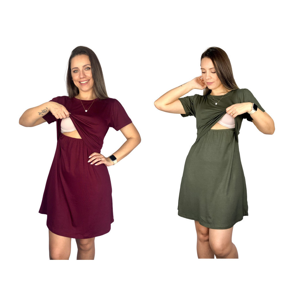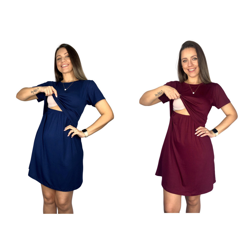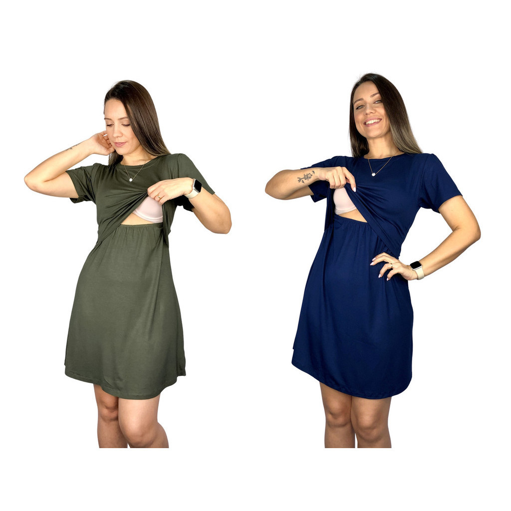 Kit 2 Vestido Amamentação Diversas Cores Premium Manga Curta Gestante Grávida Maternidade Amamentar