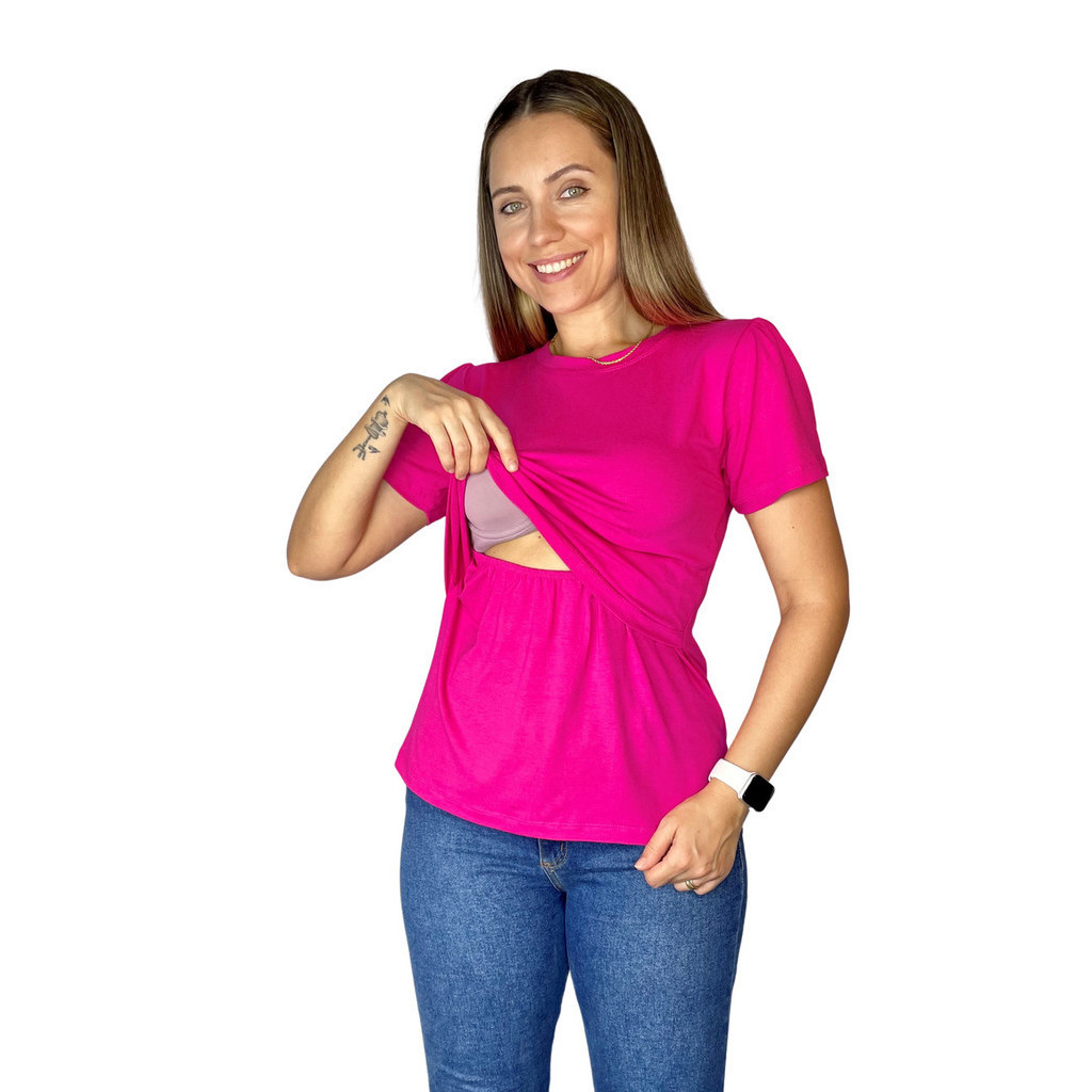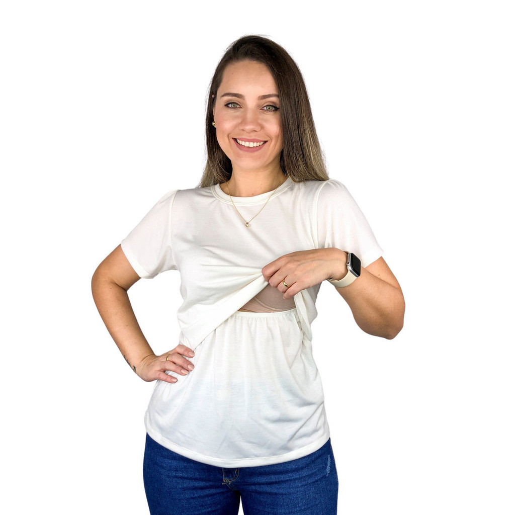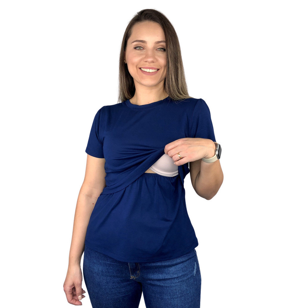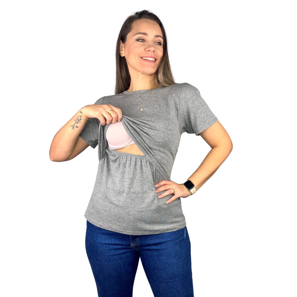 Blusa Amamentação Diversas Cores Viscolycra Premium Camiseta Manga Curta Gestante Grávida Amamentar