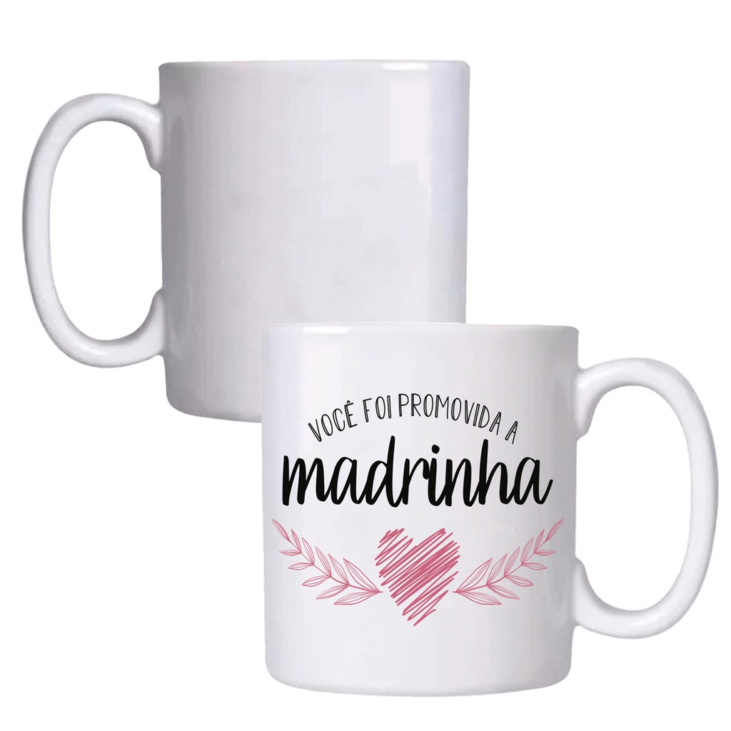 Conjunto De Canecas De Porcelana Convite Padrinhos De Batismo Padrinho E Madrinha Dindo Dinda 310ml
