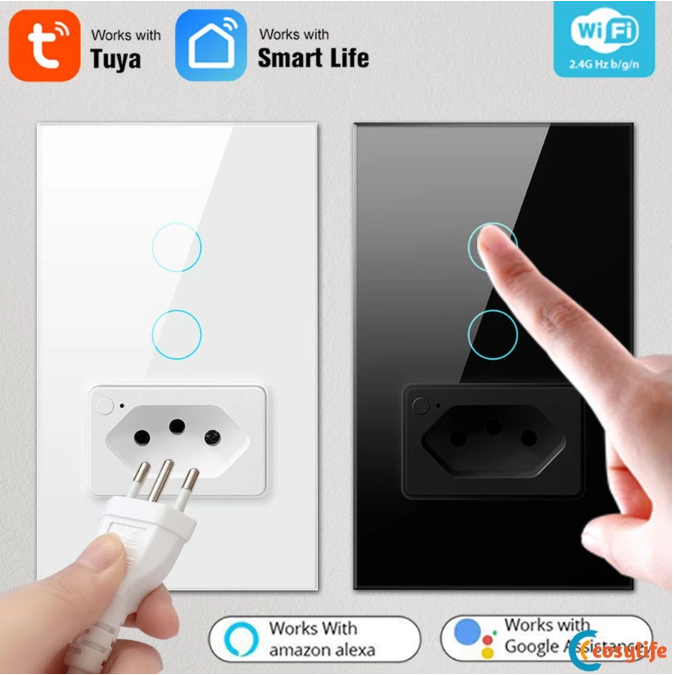 Interruptor Inteligente 1 2 Botão + Tomada Wifi Smart Alexa Google