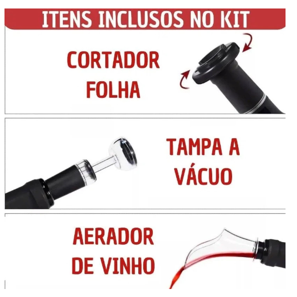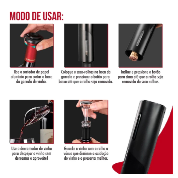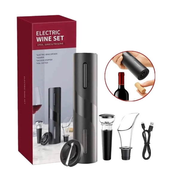 Saca Rolha Abridor De Vinho Elétrico Recarregável Automático Kit 4 Peças Carregamento por usb