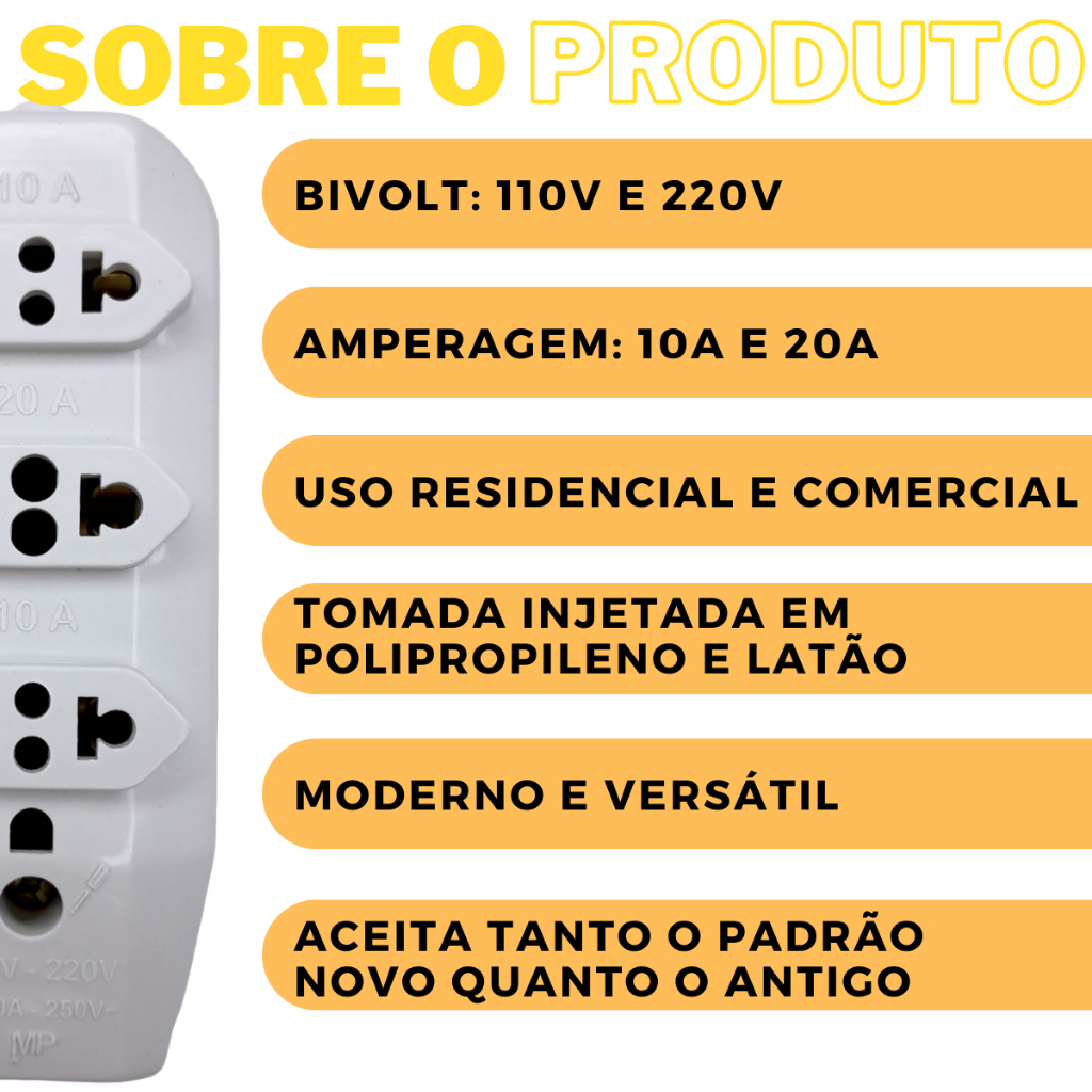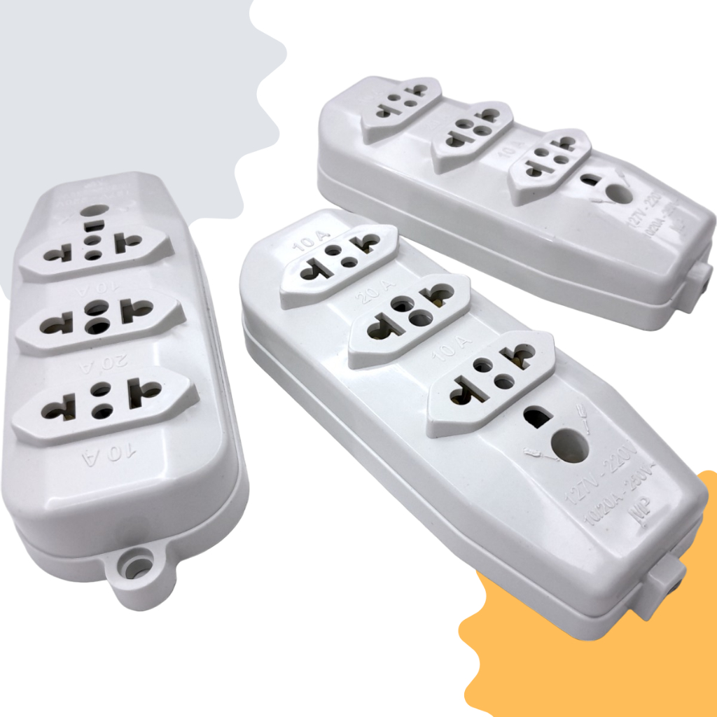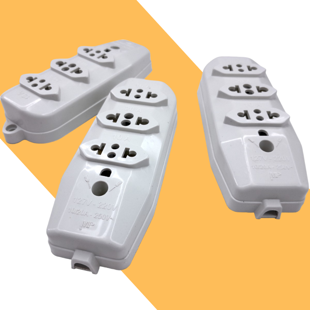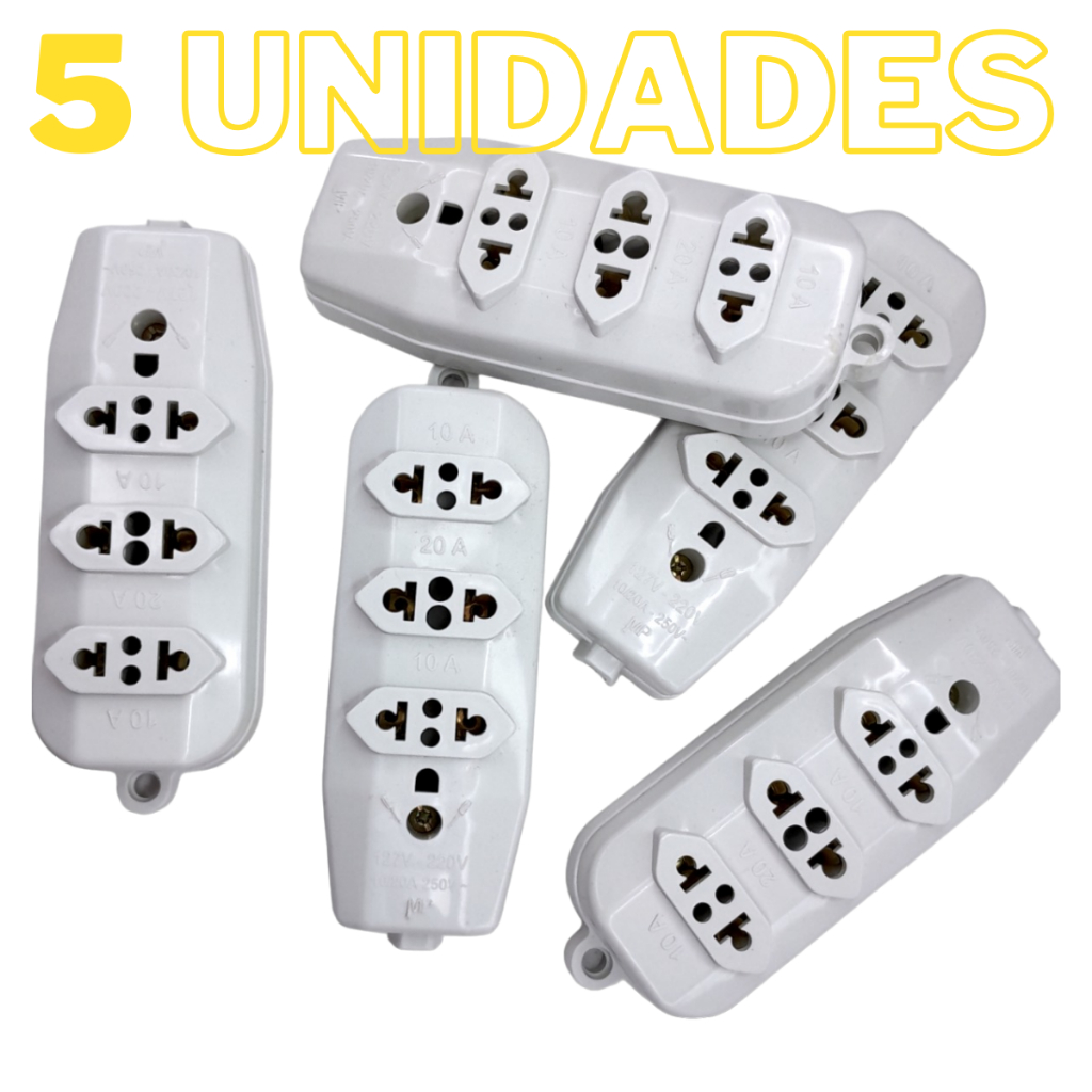 KIt com 5 Tomadas Em Barra Tripla 250v Branca Voltagem de 127 227 10 e 20 A Serve P Eletrodomésticos