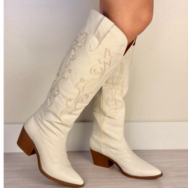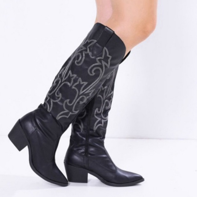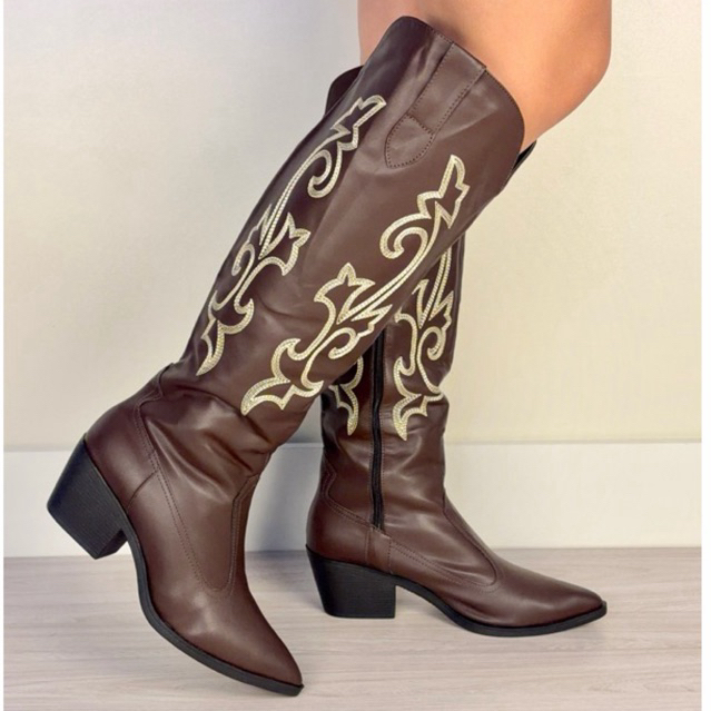 Bota Feminina Texana Western Cano Longo Salto Baixo 4 cm