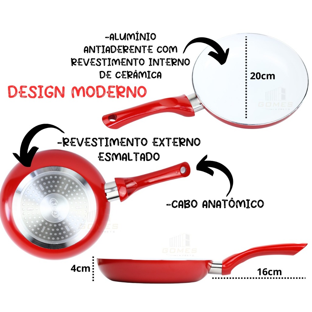 Frigideira Cerâmica Antiaderente 20cm Antiderrapante Média Indução