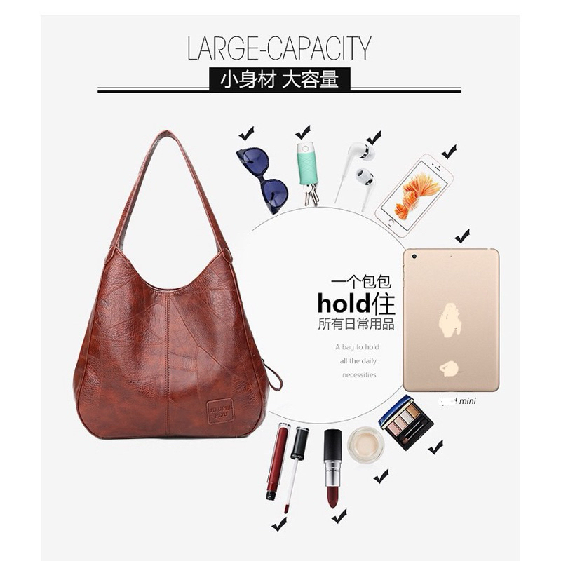 bolsa feminina de ombro médio 3 Compartimentos PU