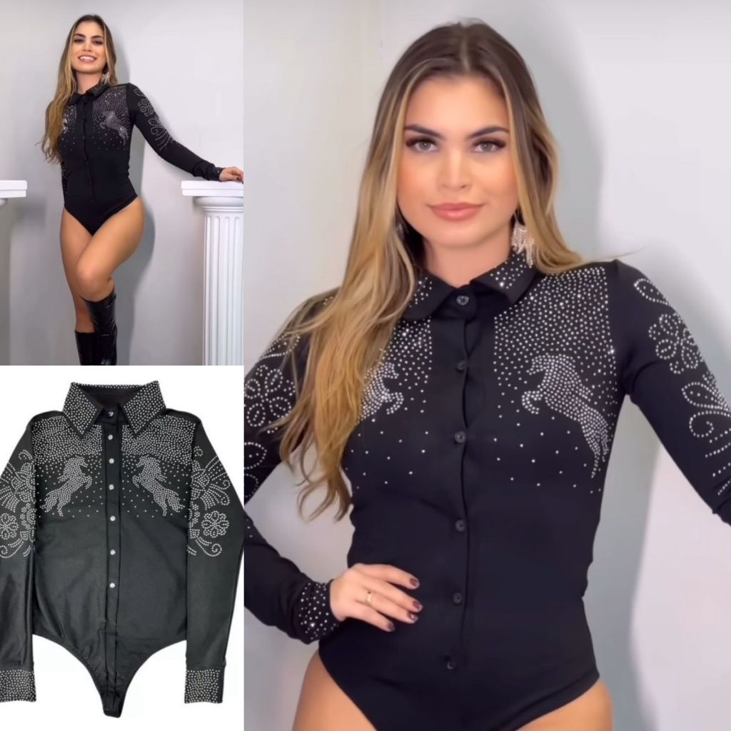 Body rodeio blusa country feminina festa boiadeira cavalo strass