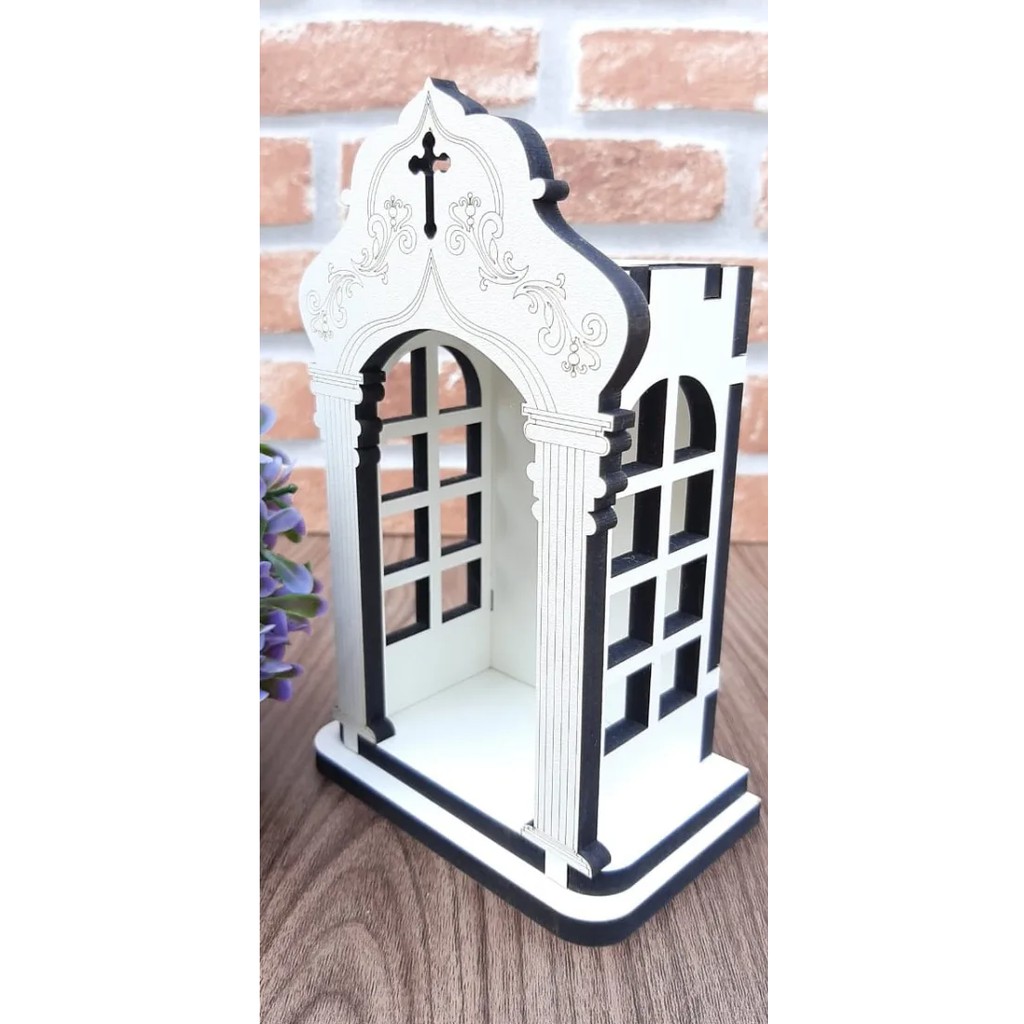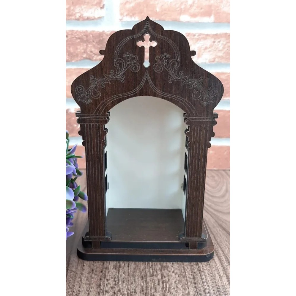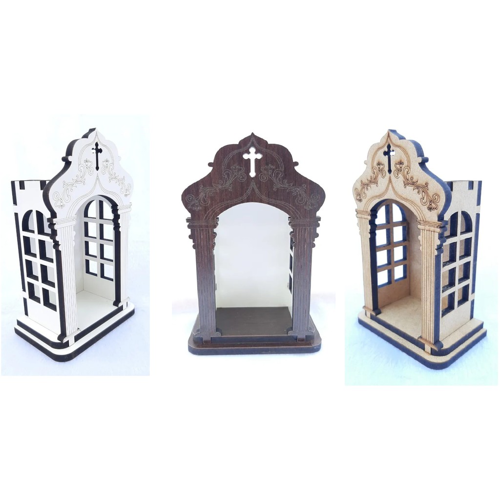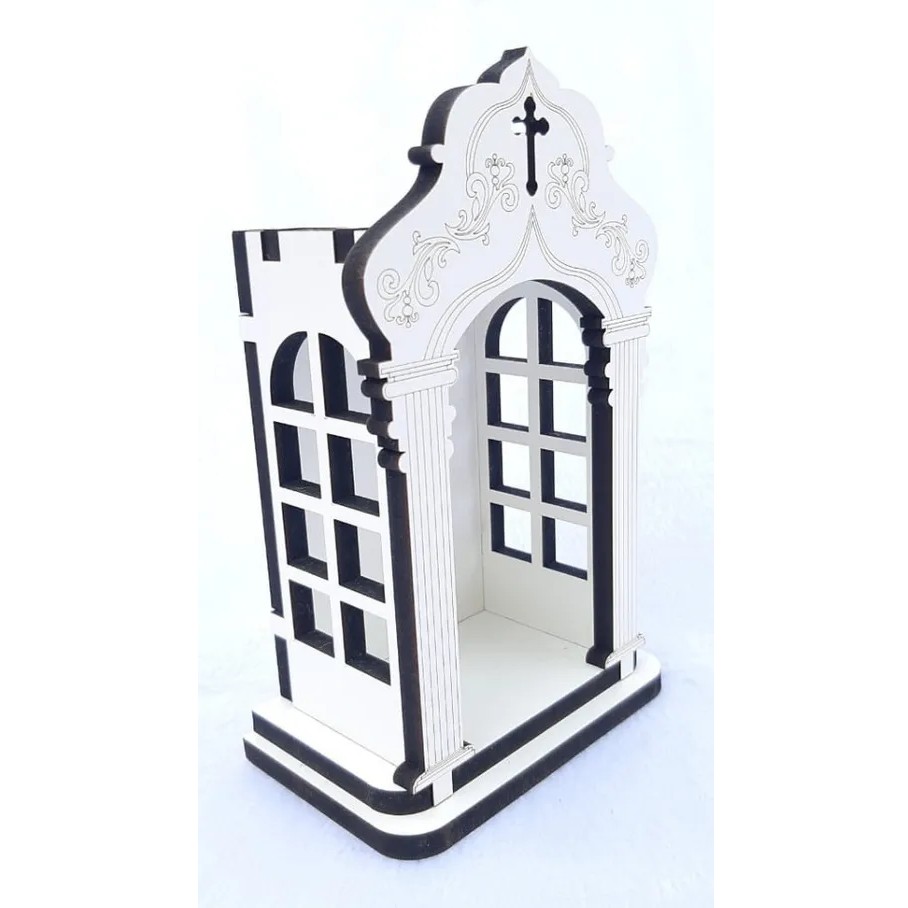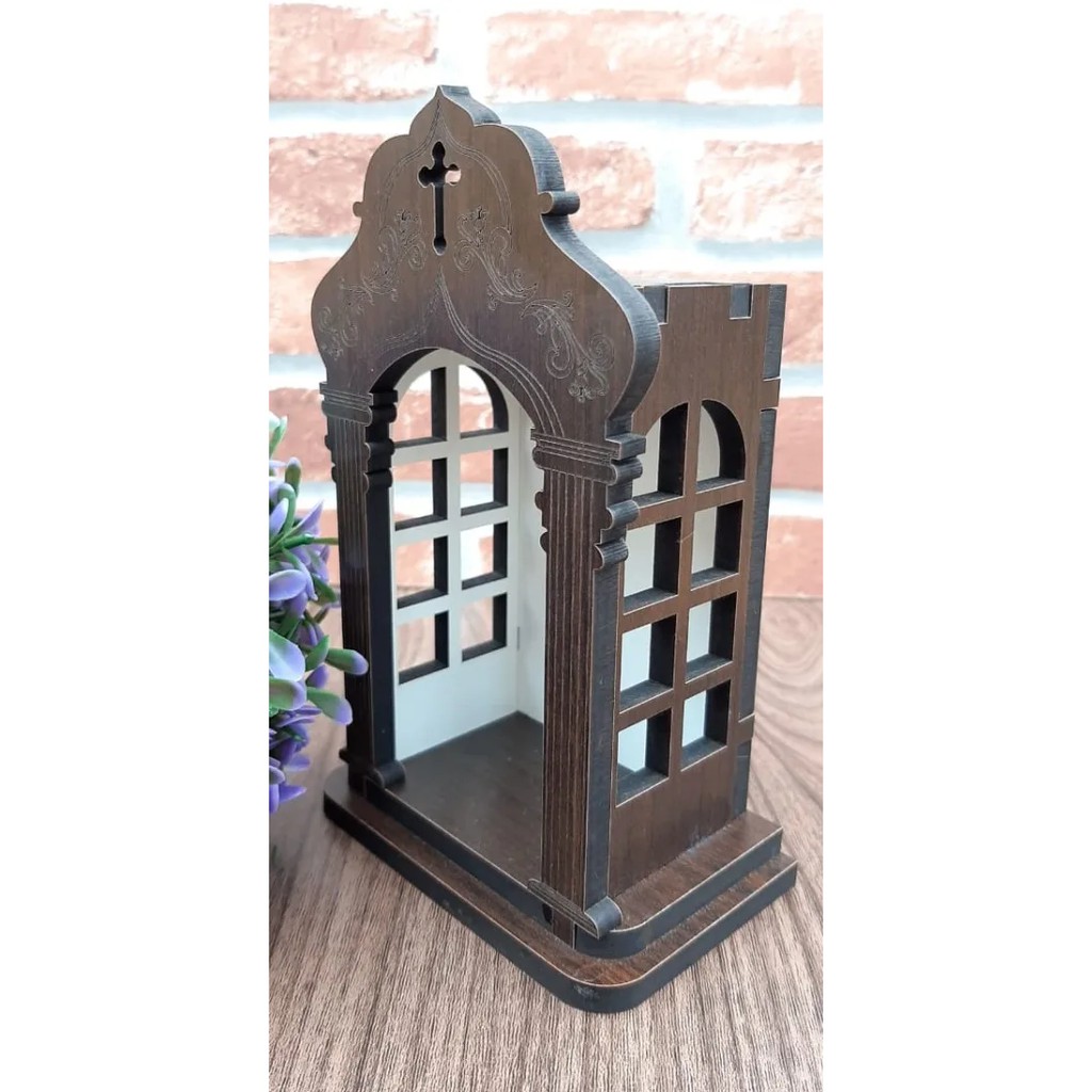 Capela Oratório 32cm Madeira Mdf Varias Cores Branco - Tabaco - Madeira Natural Casa Imagens Santas