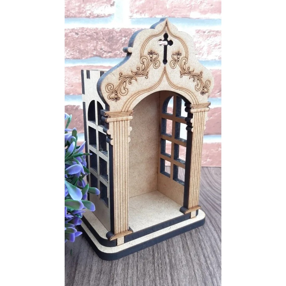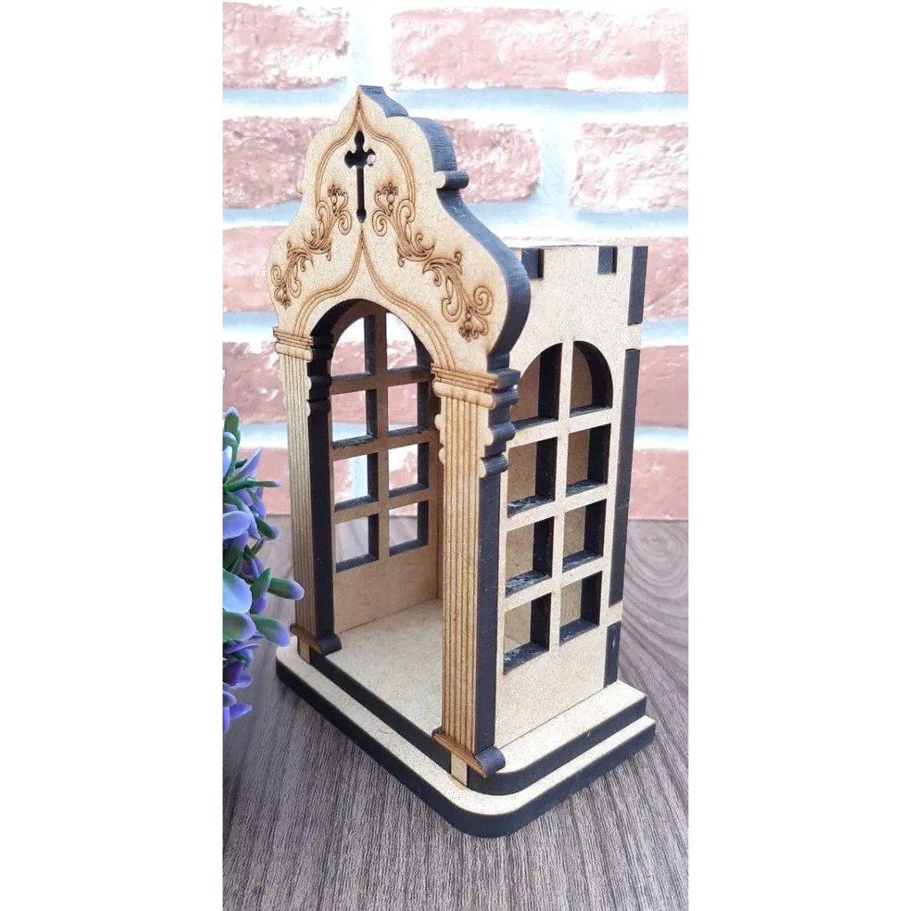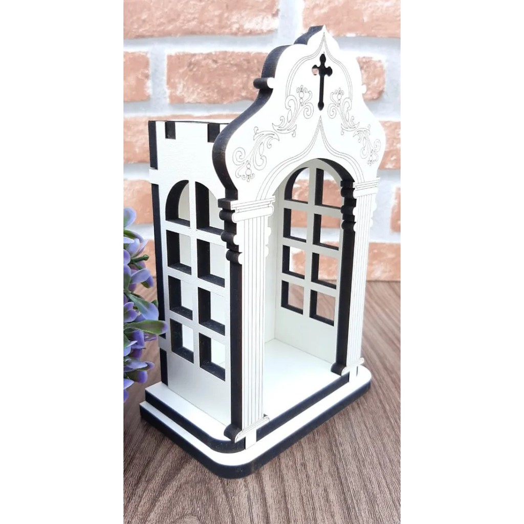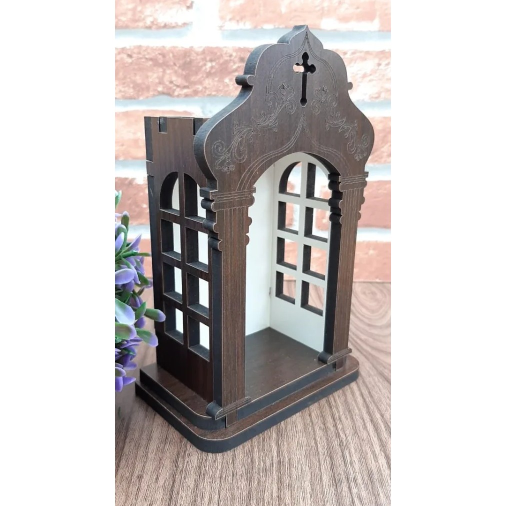 Capela Oratório 32cm Madeira Mdf Varias Cores Branco - Tabaco - Madeira Natural Casa Imagens Santas