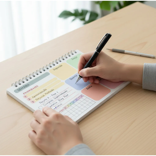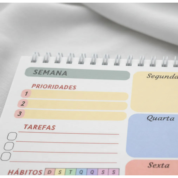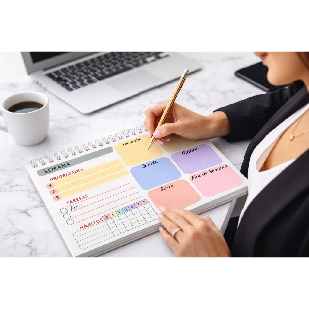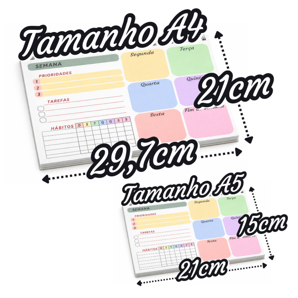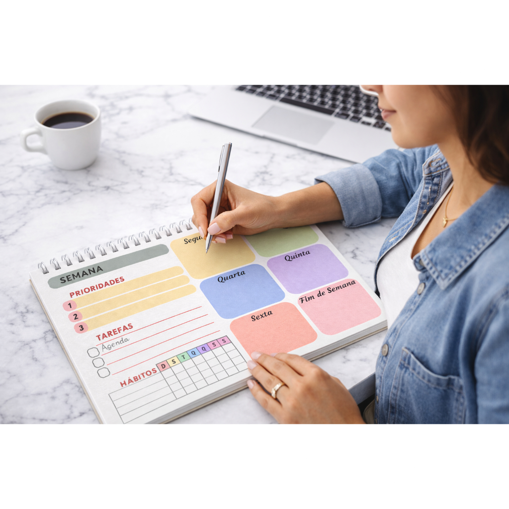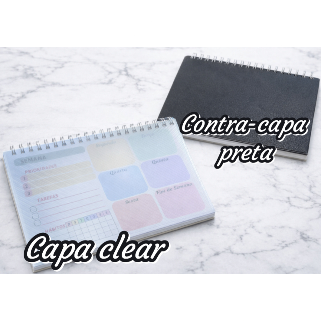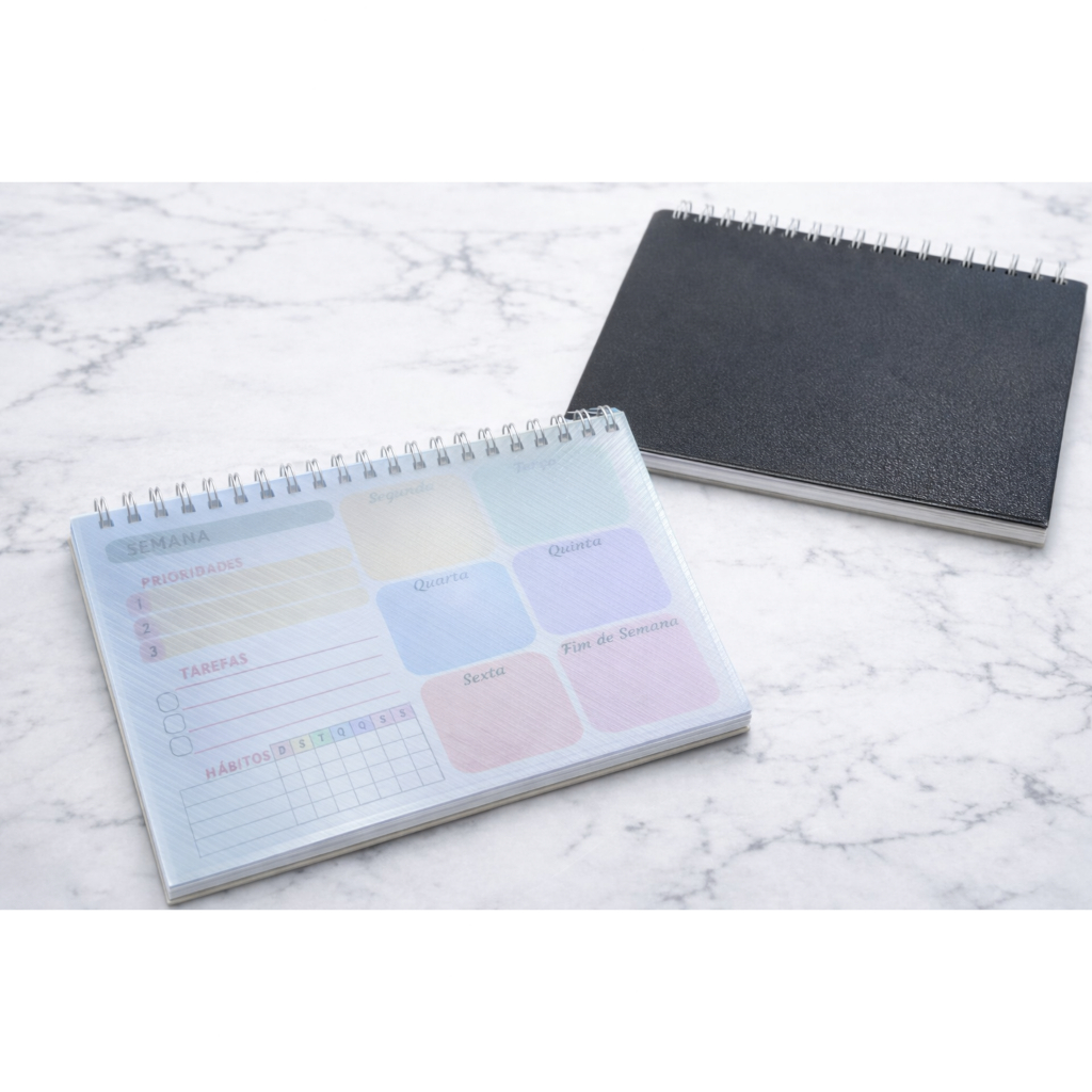 Planner Semanal – A4 ou A5 | 50 Folhas | Papel 90g | Capa Clear Premium