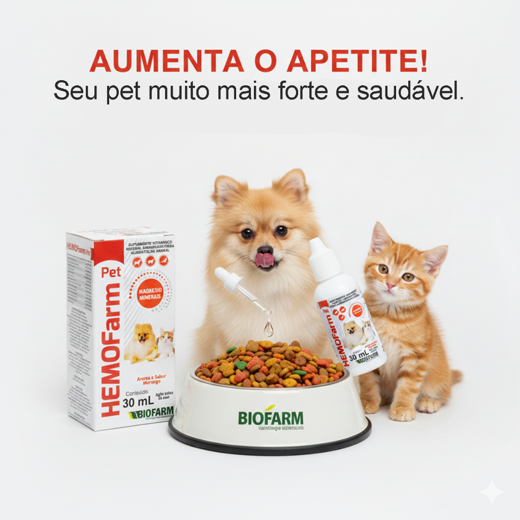 Aumenta Apetite Cães Gatos Hemofarm Pet Ferro Suplemento Vitamínico Biofarm