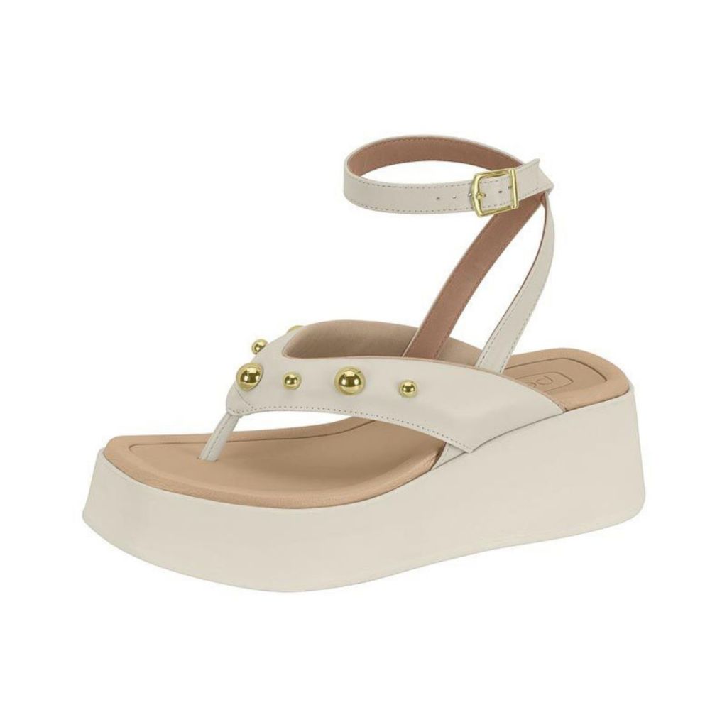 Sandália Feminina Papete Beira Rio Off White Tachas Dourada Flatform