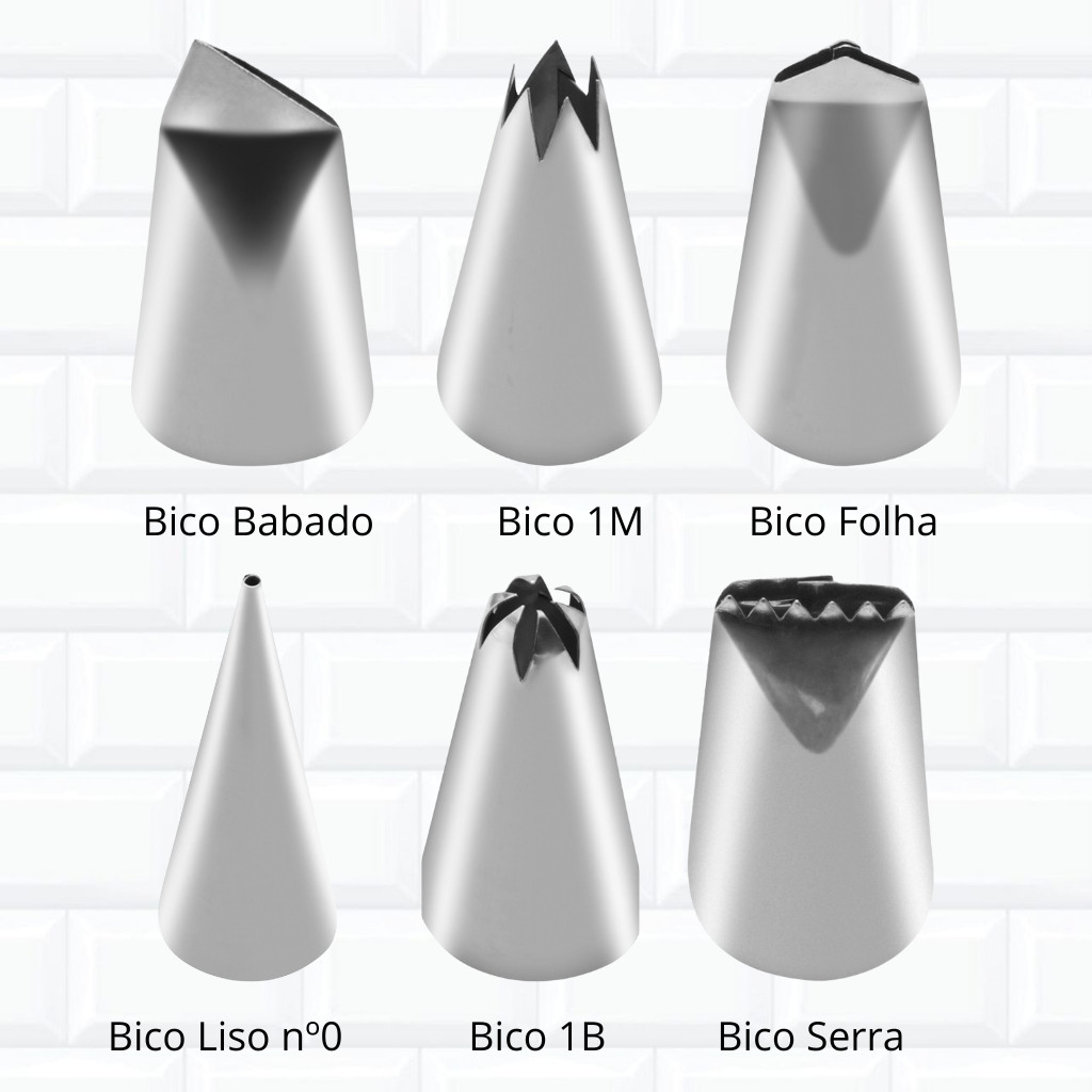 Kit 6 Bicos de Confeitar Essenciais 1M 1B Perlé Folha Pétala