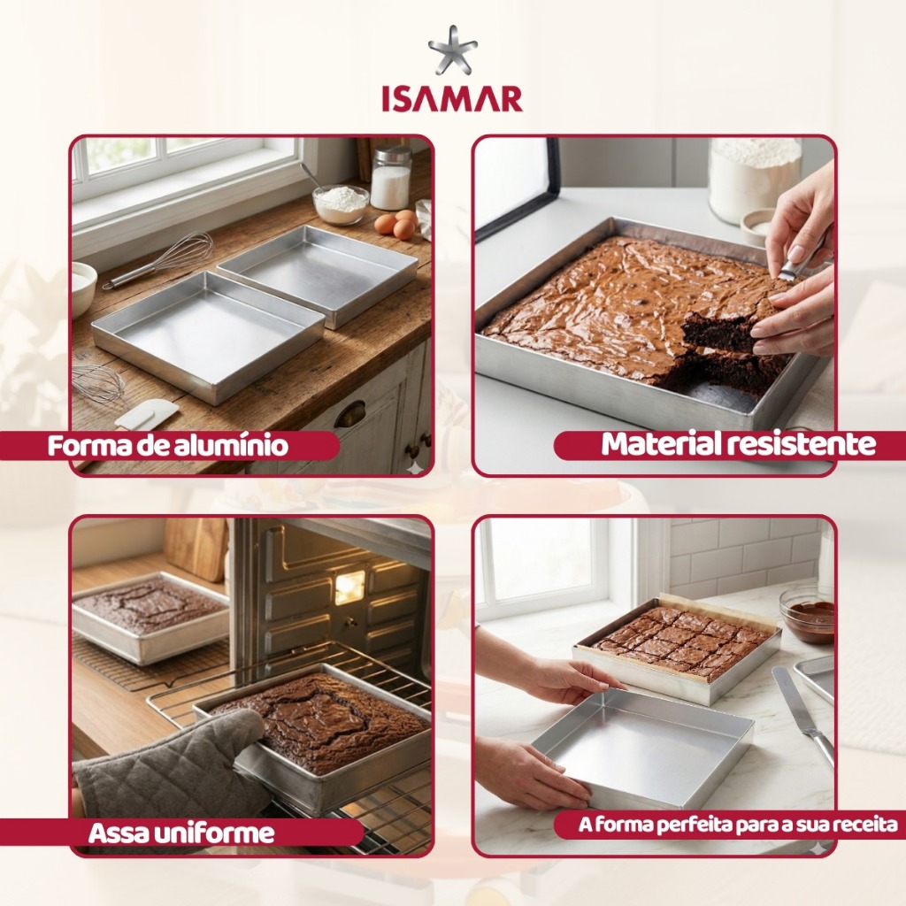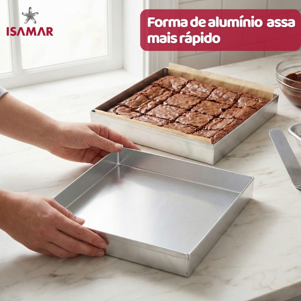 Kit 2 Formas Assadeira Quadrada Para Brownie 30x30x3 Cm
