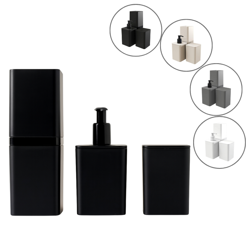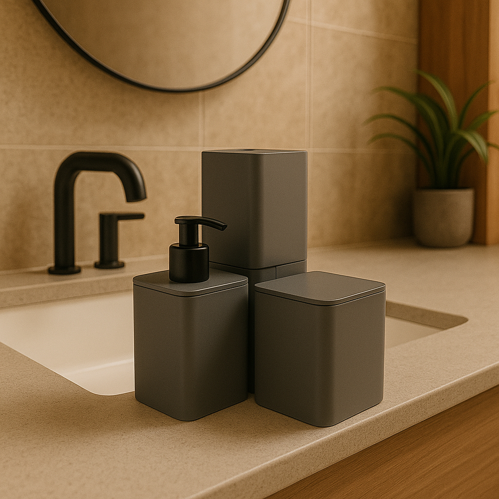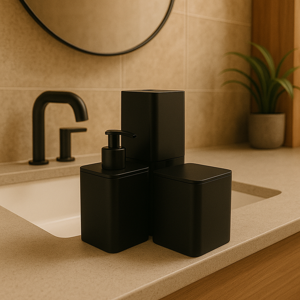 Kit Banheiro Lavabo Moderno Porta Escova Saboneteira Liquida Porta Algodão Cotonete 3 Peças