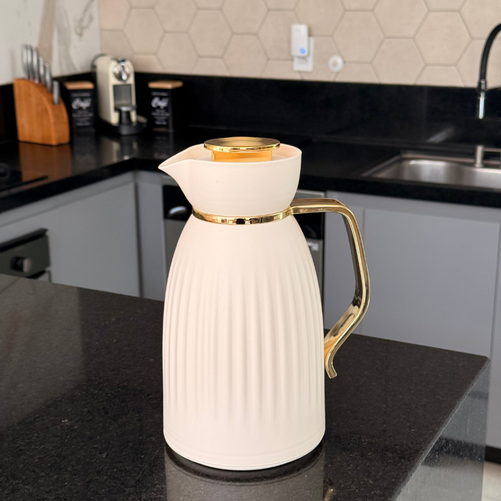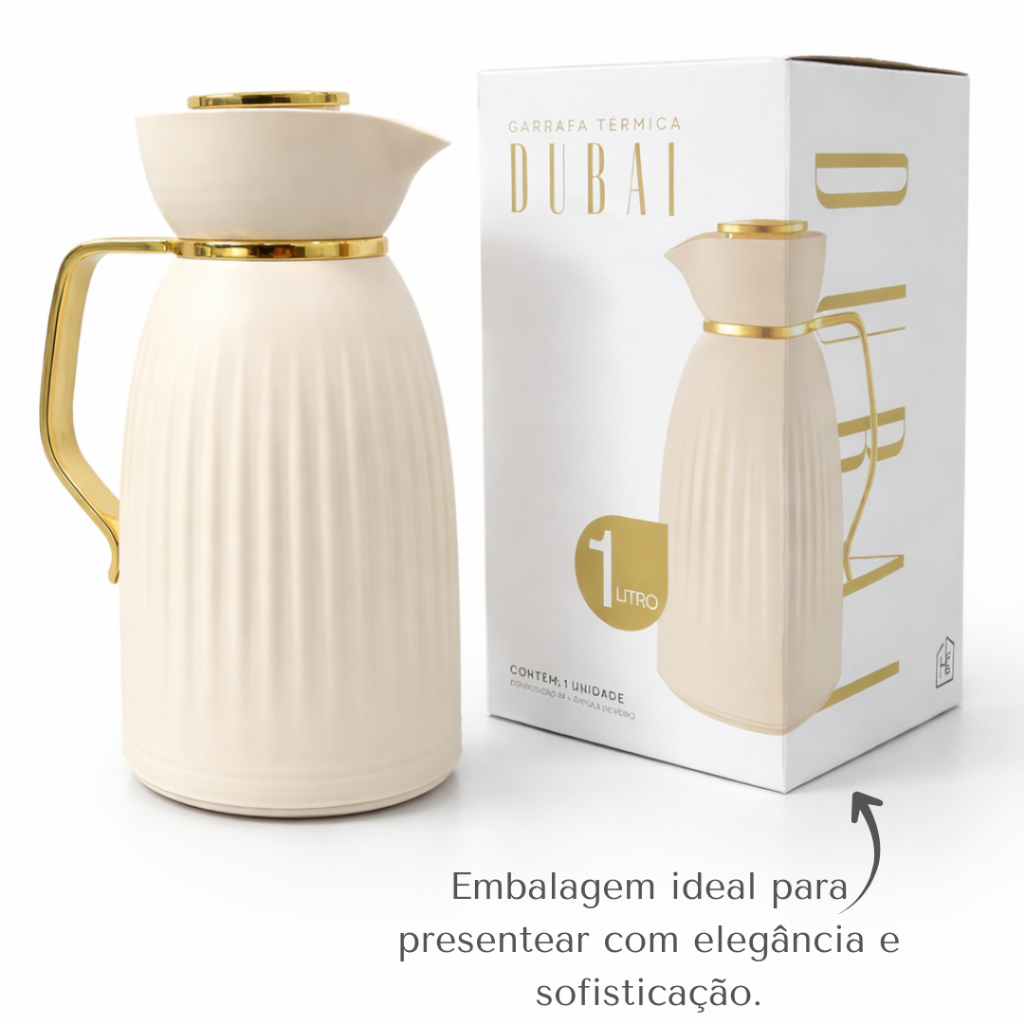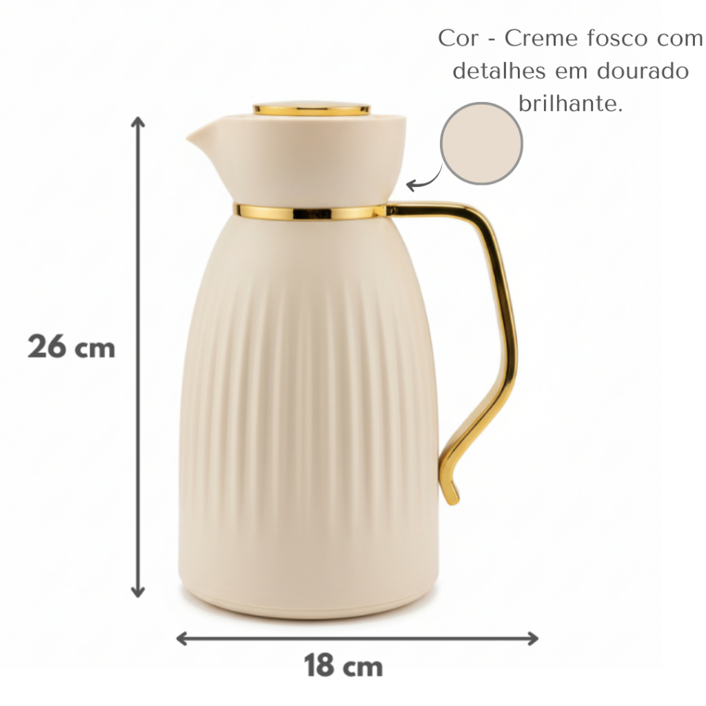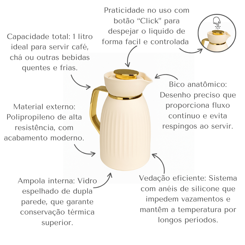 Garrafa Térmica 1 Litro Café Chá Botão Click Mesa Posta Escritório Dubai Cor Creme