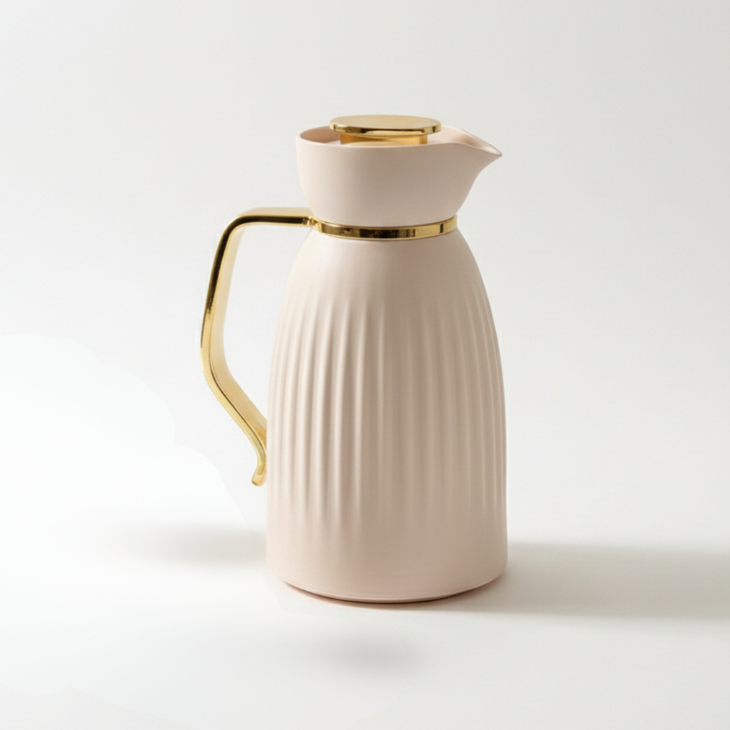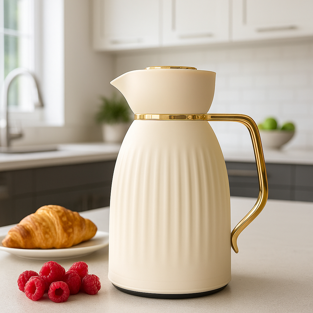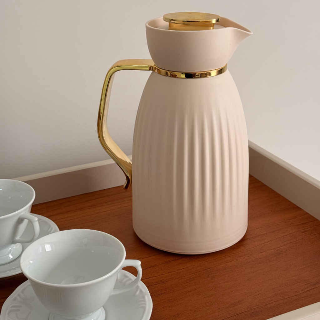 Garrafa Térmica 1 Litro Café Chá Botão Click Mesa Posta Escritório Dubai Cor Creme
