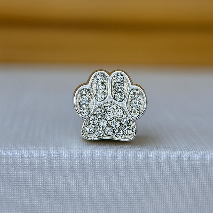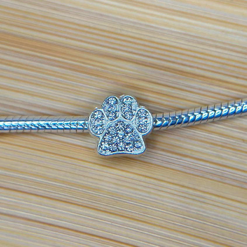 Berloque separador patinha cravejada com brilhos - banhado a prata, com garantia