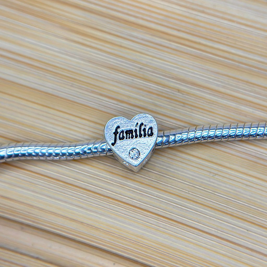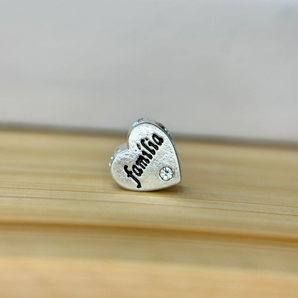 Berloque separador “familia” com pedra cristal, banhado a prata com garantia