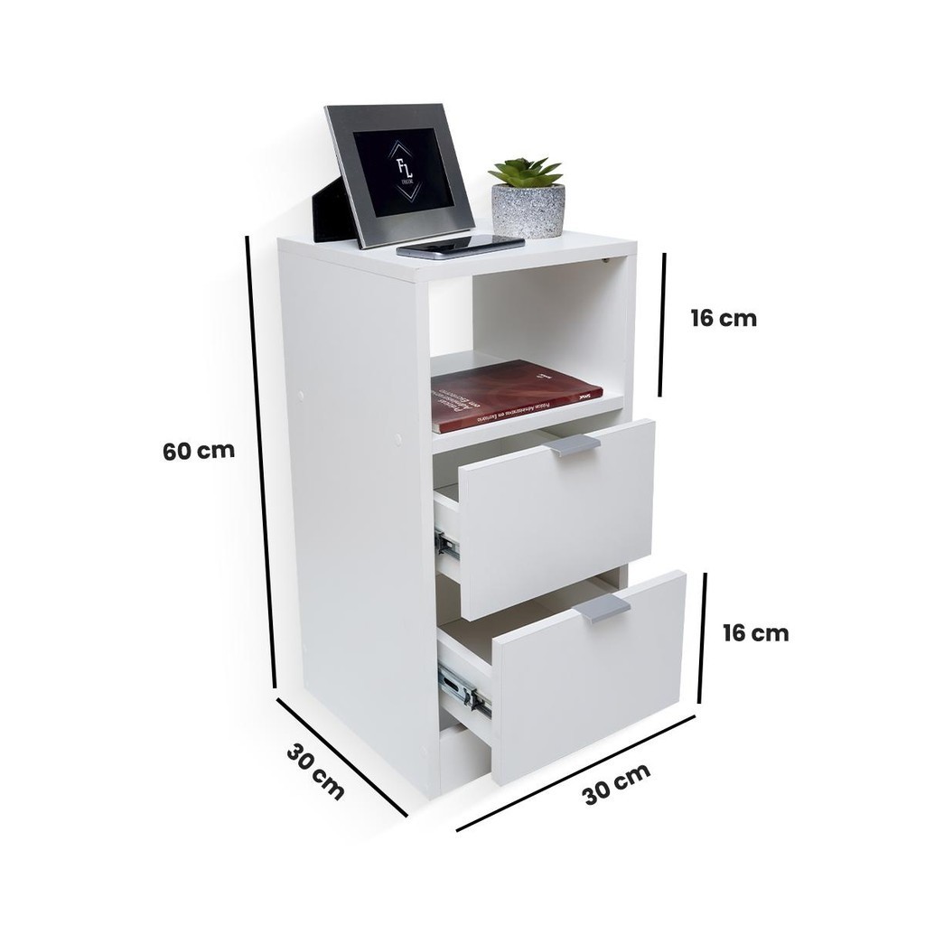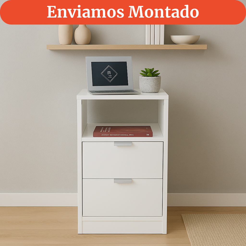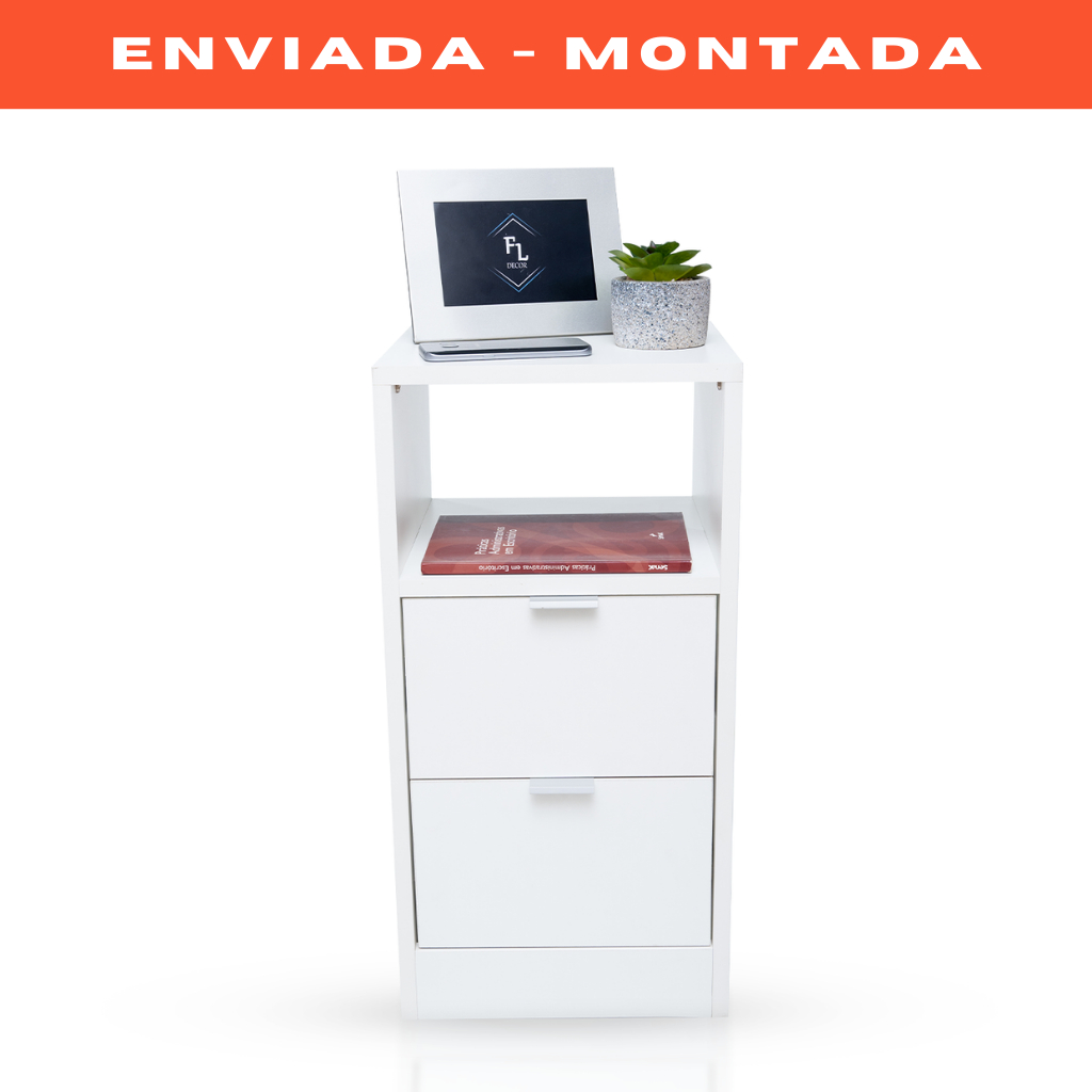 Mesa de Cabeceira Criado Branco 30cm 2 Gavetas e 1 Nicho em MDF Lado da Cama Quarto Estilo Cômoda