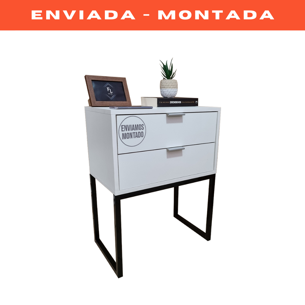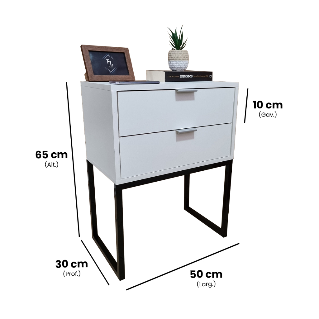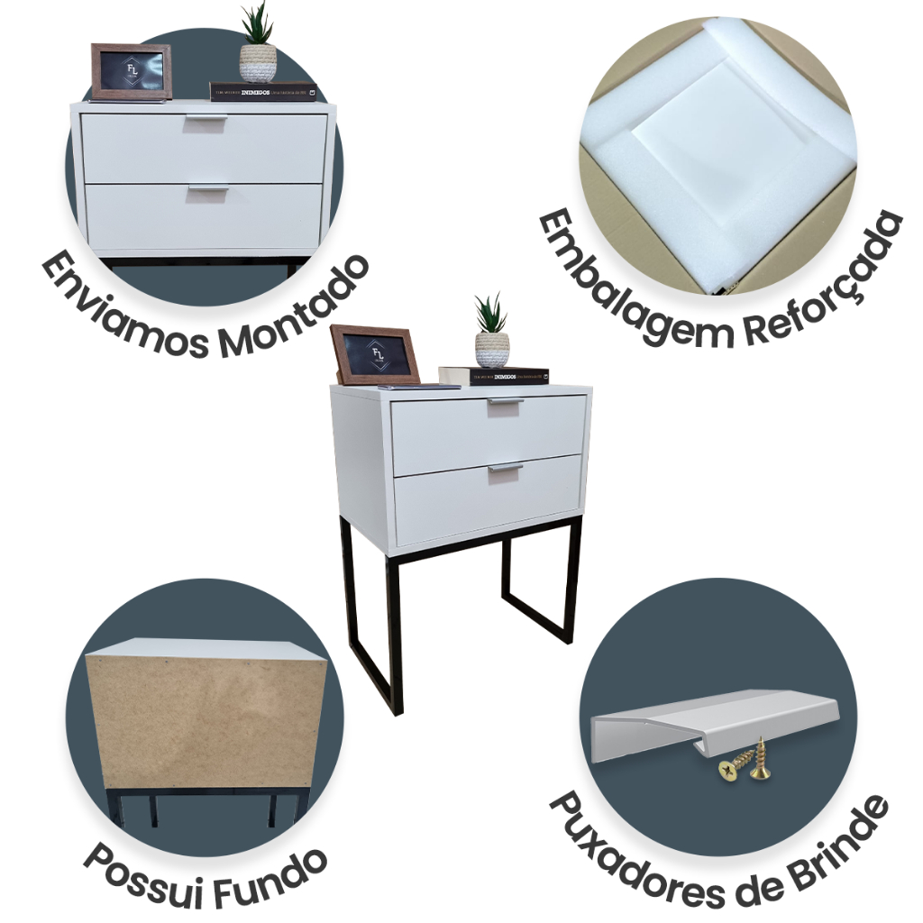 Mesa De Cabeceira Industrial Eco 50cm 2 Gavetas Base Preta Já Montado