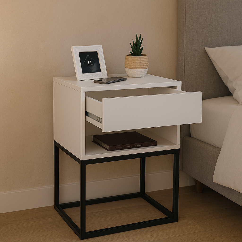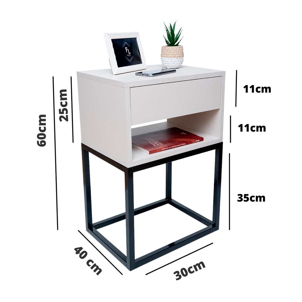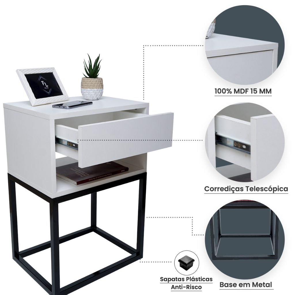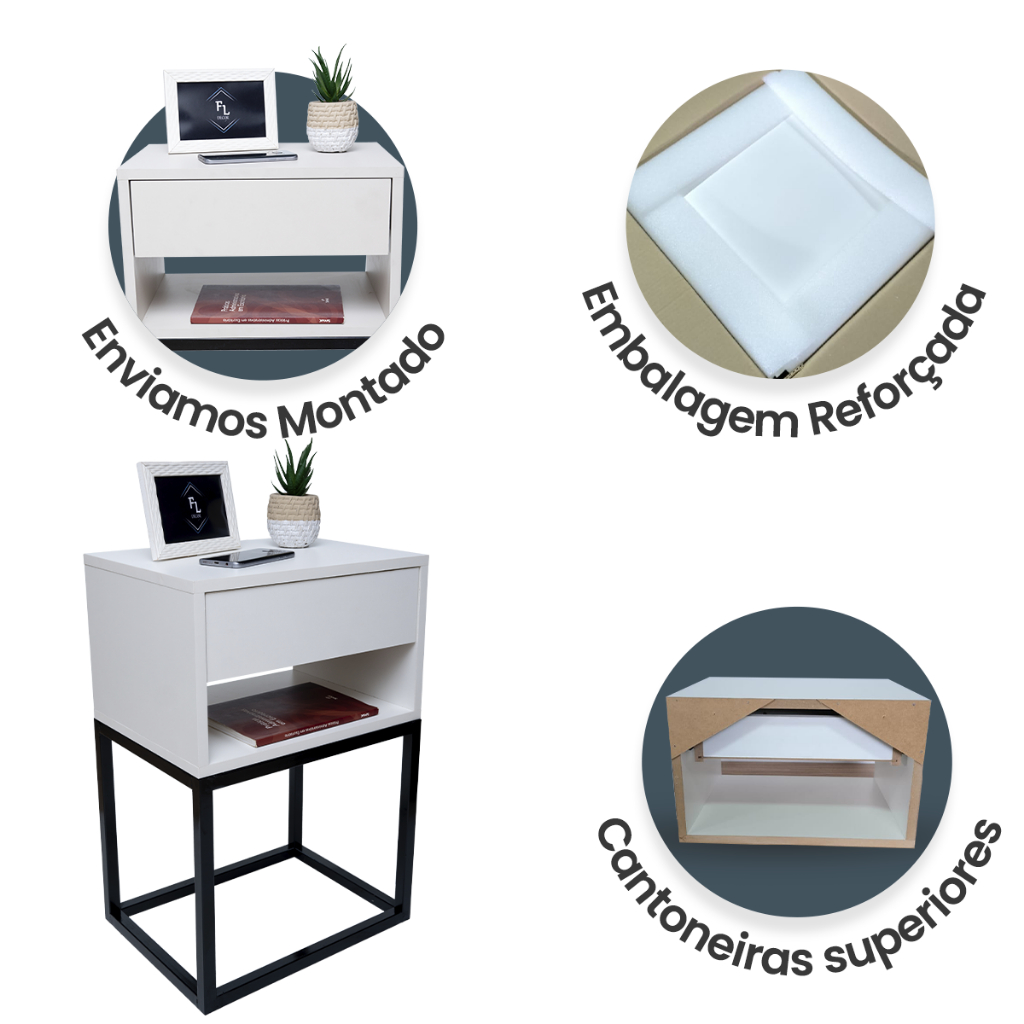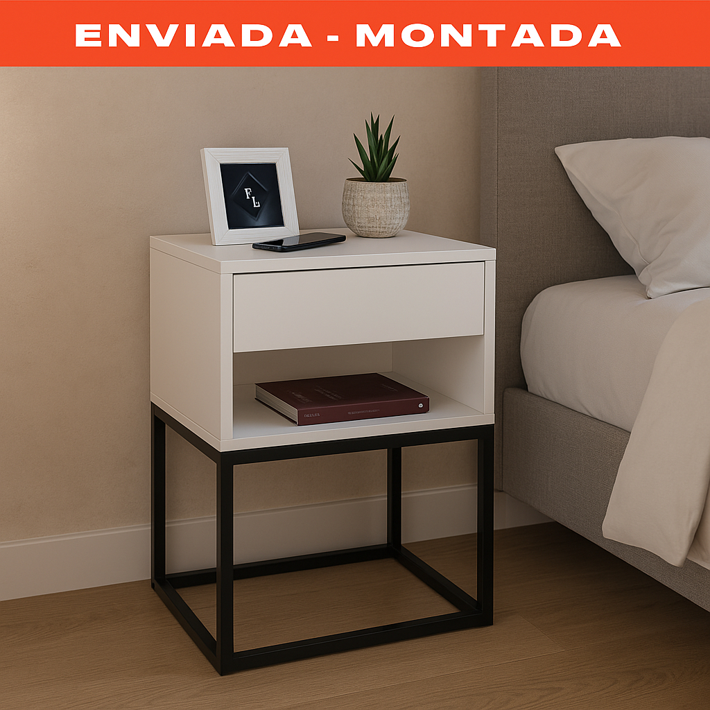 Mesa De Cabeceira Industrial 40 Base Preta Enviamos Montado