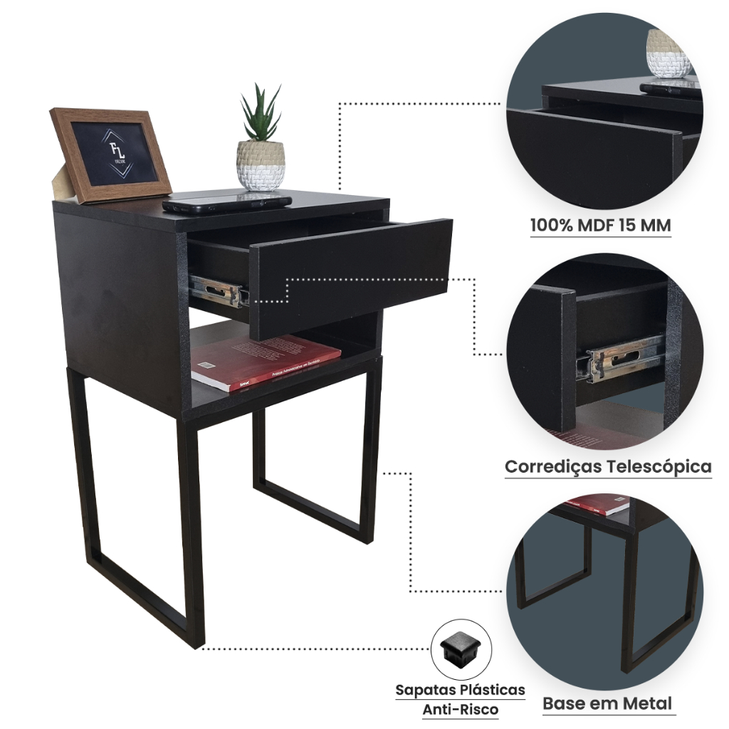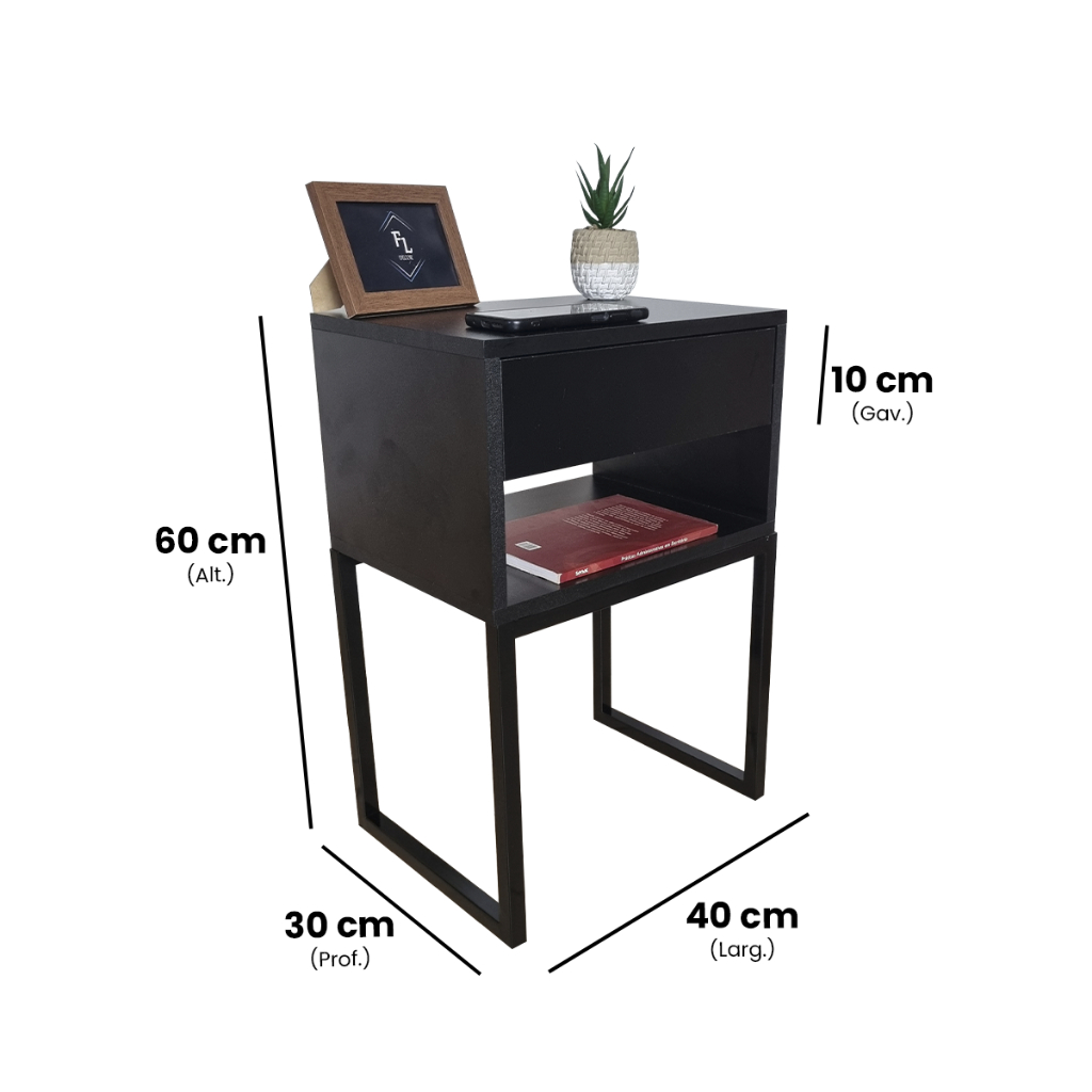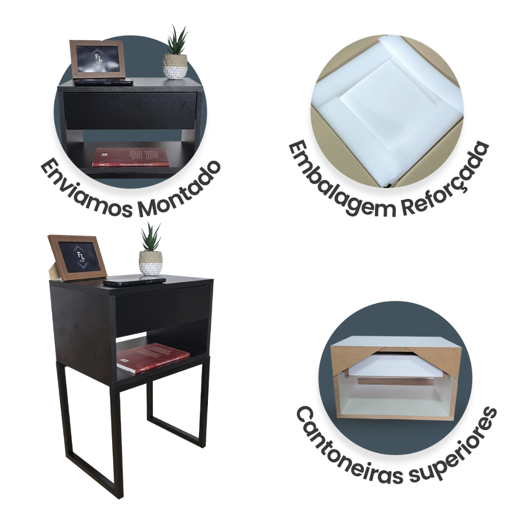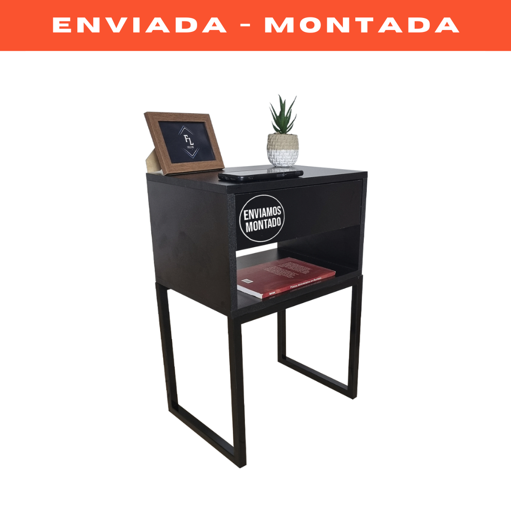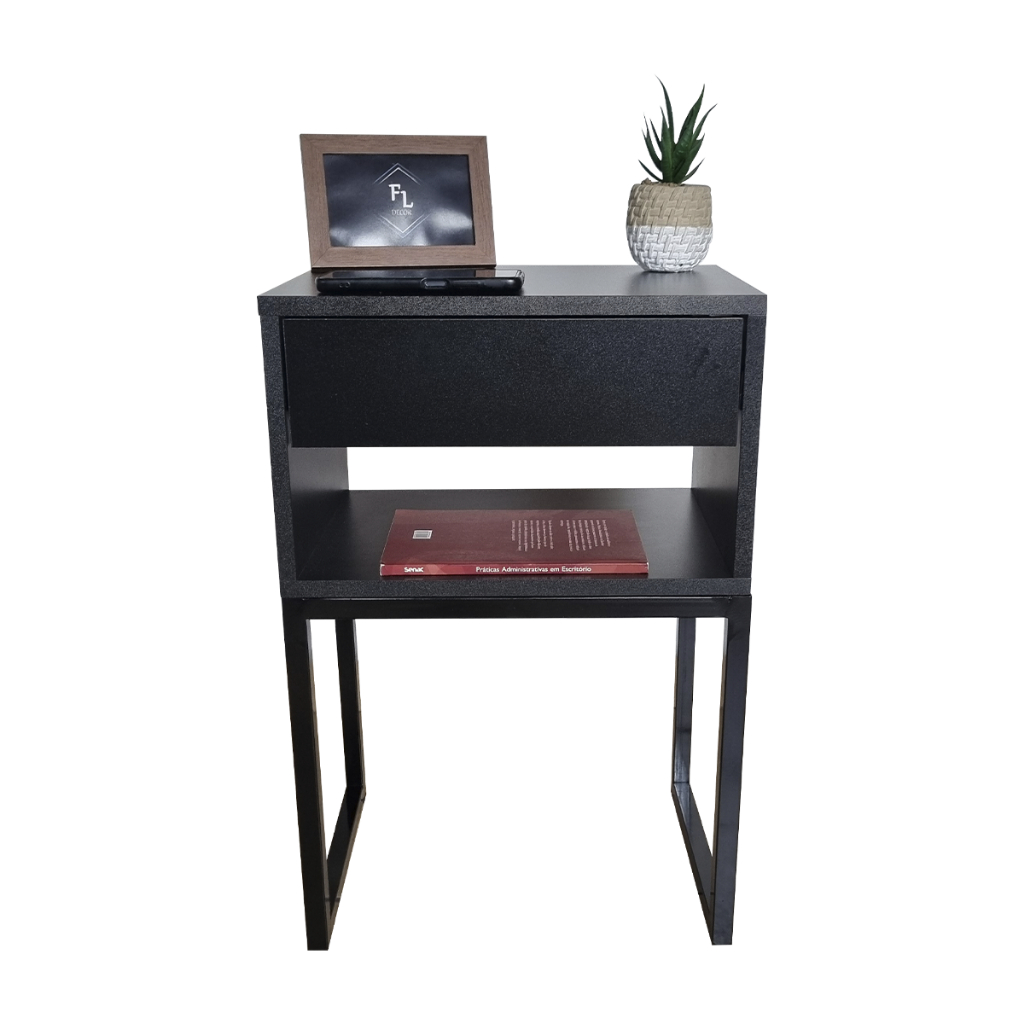 Mesa De Cabeceira Industrial Preto Eco 40cm Base Preta - Enviamos Montado