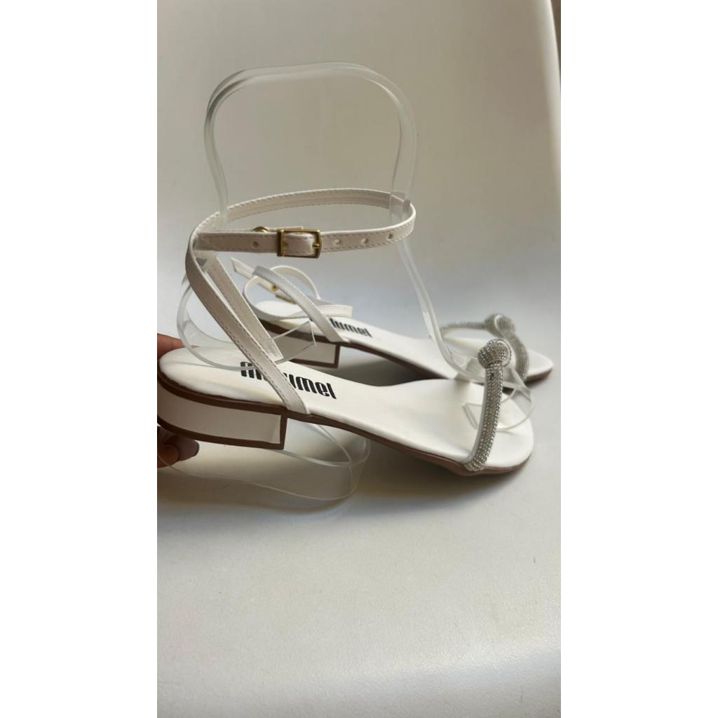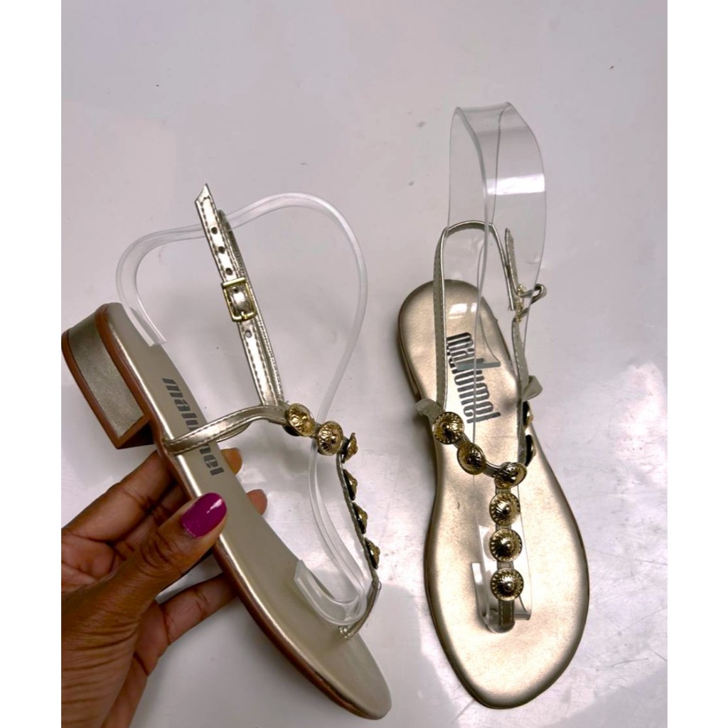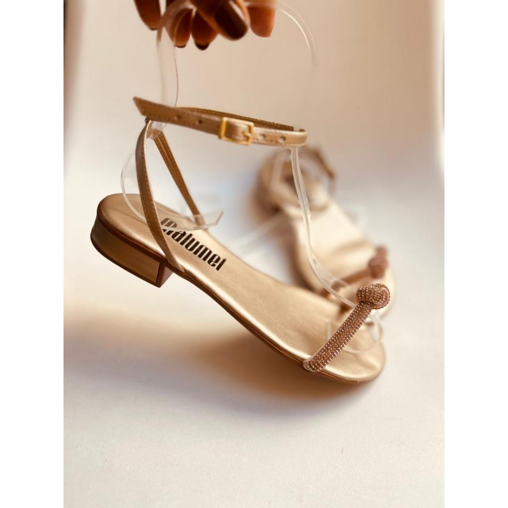 Sandália Feminina Salto Baixo Rasterinha Dourada Detalhe Moeda Saltinho