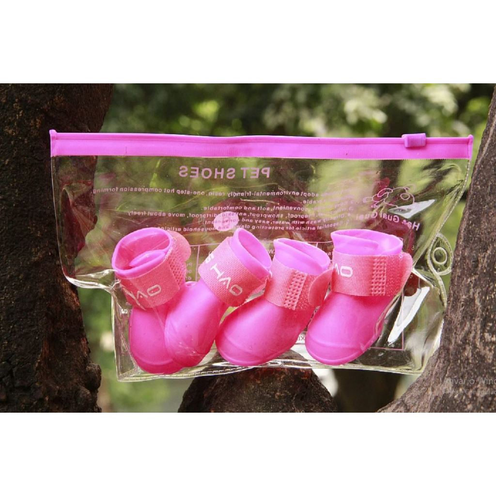 Kit 4 Sapato para Cachorro Gato Pet Bota de Borracha Impermeável Antiderrapante Botinha a Prova D'água Protetor LR-0201