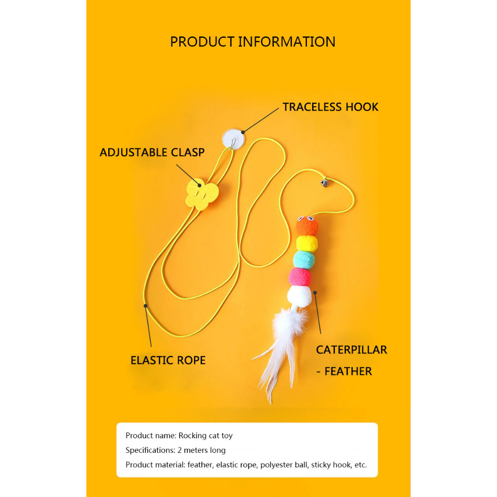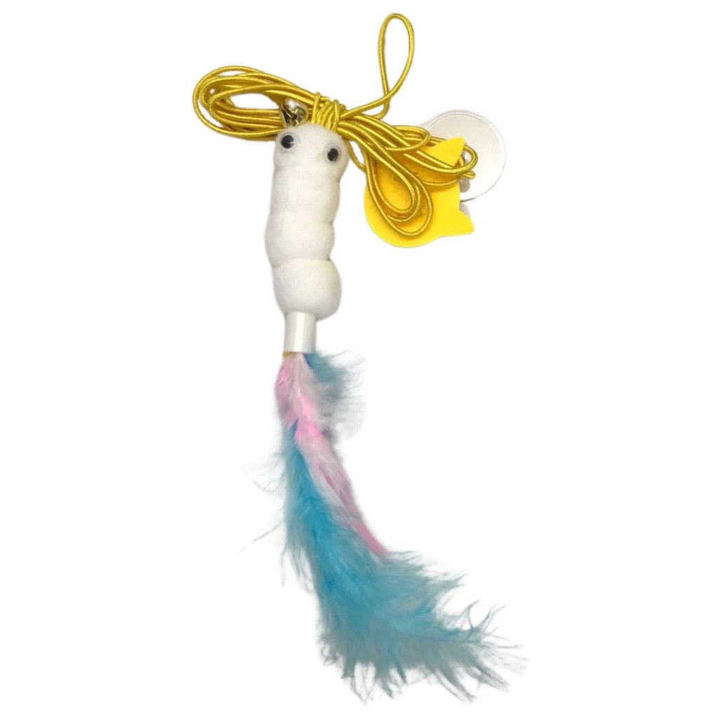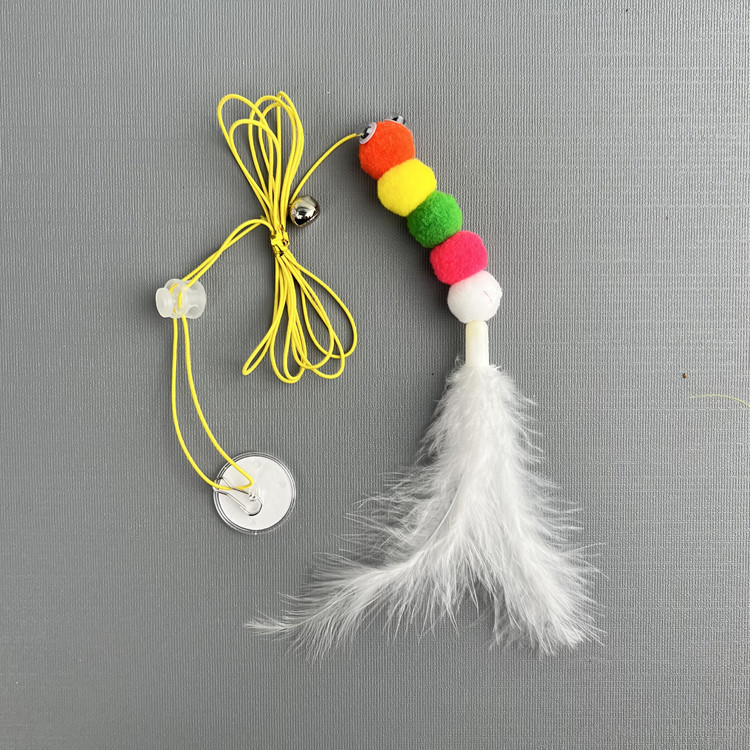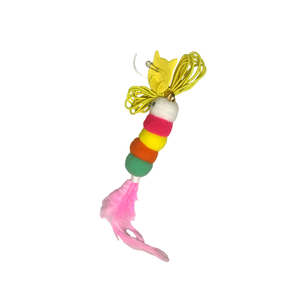 Brinquedo para Gato Interativo Lagarta com Pena Sino e Corda para Pendurar em Porta Teto Antiestresse Divertido LR-0181