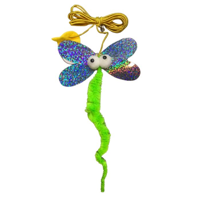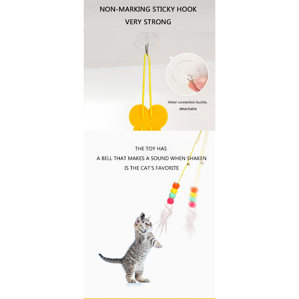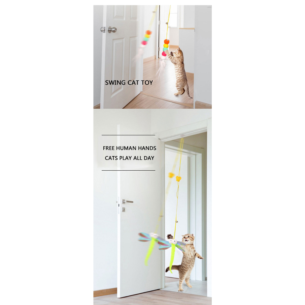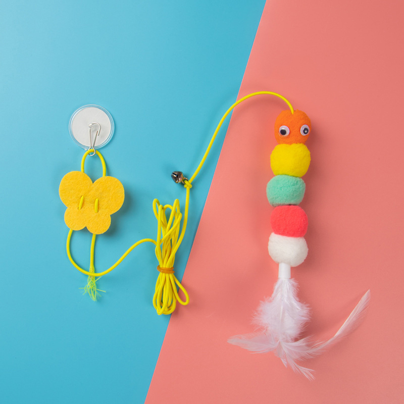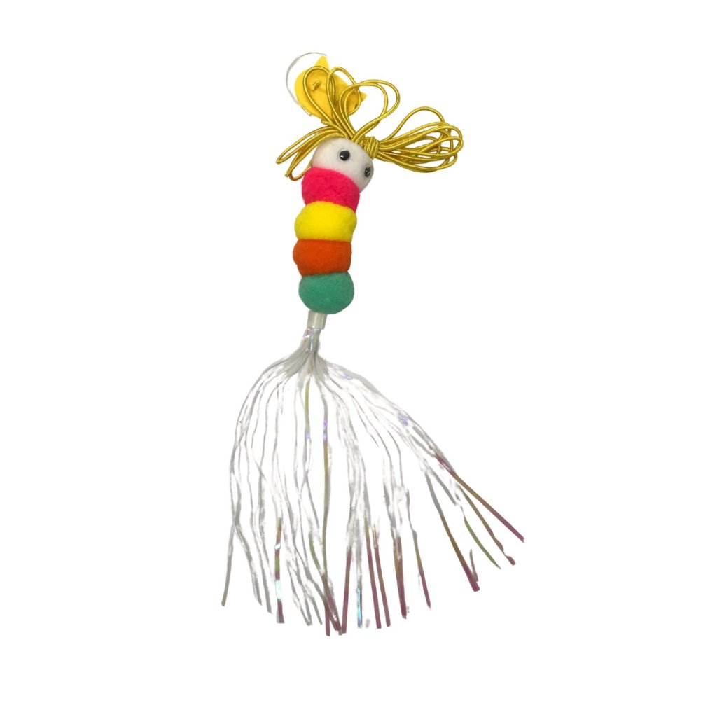 Brinquedo para Gato Interativo Lagarta com Pena Sino e Corda para Pendurar em Porta Teto Antiestresse Divertido LR-0181