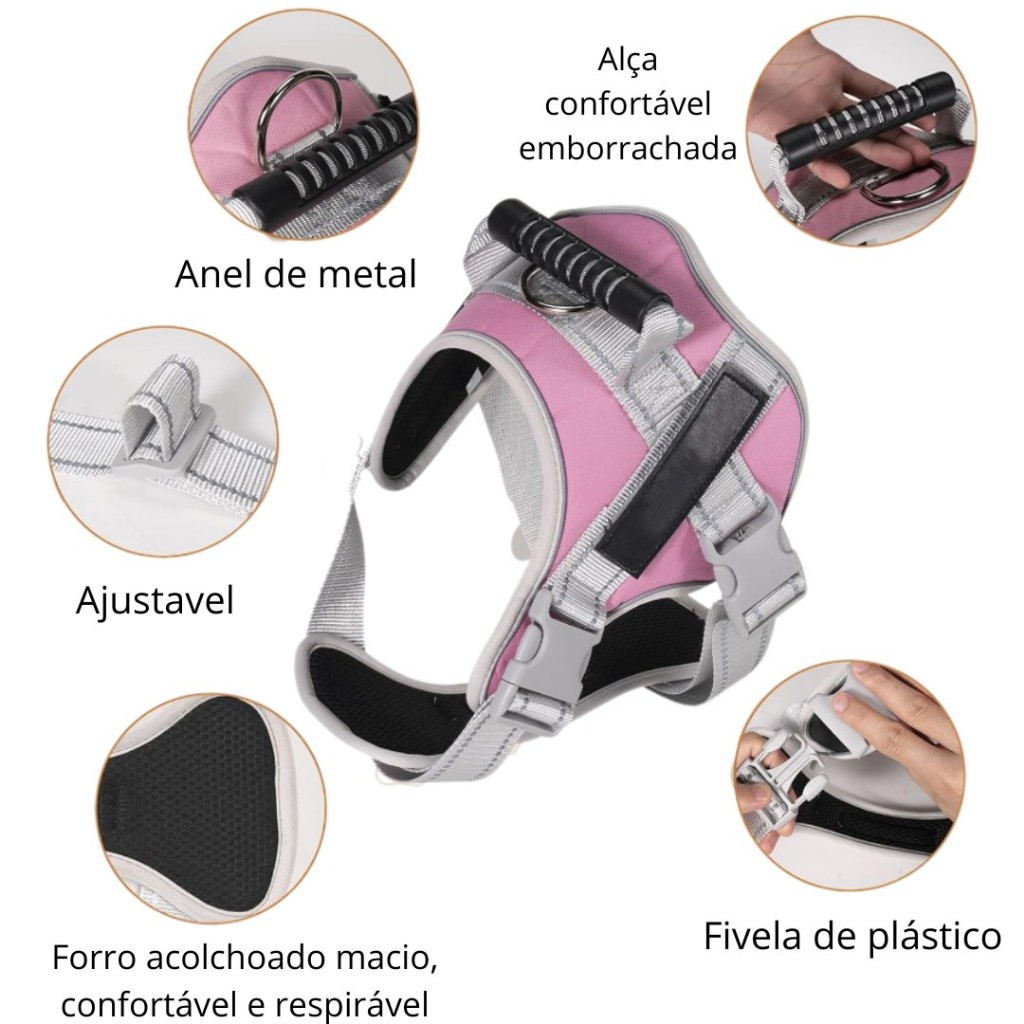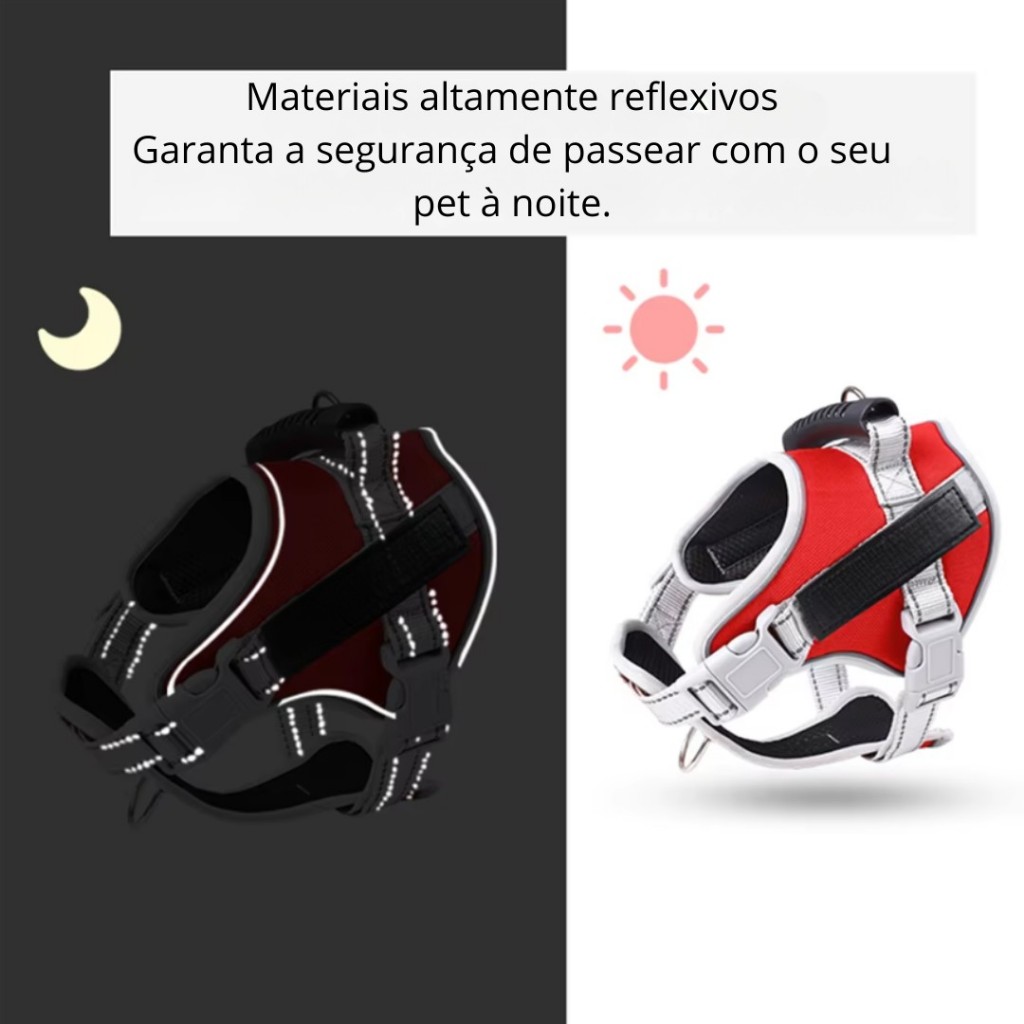 Coleira Peitoral Reforçado Refletivo Ajustável Com Alça Emborrachada Para Cachorros Grande, Médio e Pequeno LR-0310