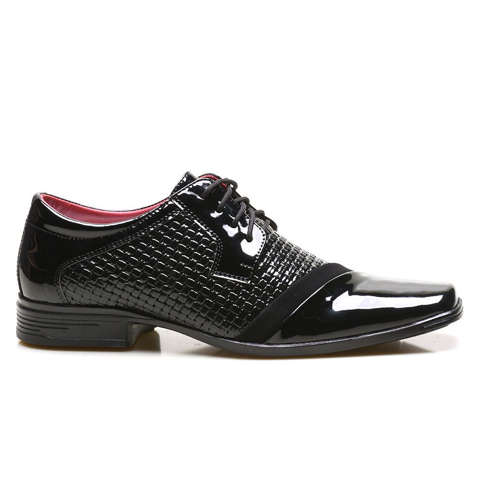Sapato Social Masculino Preto Verniz De Amarrar Estiloso e Confortável