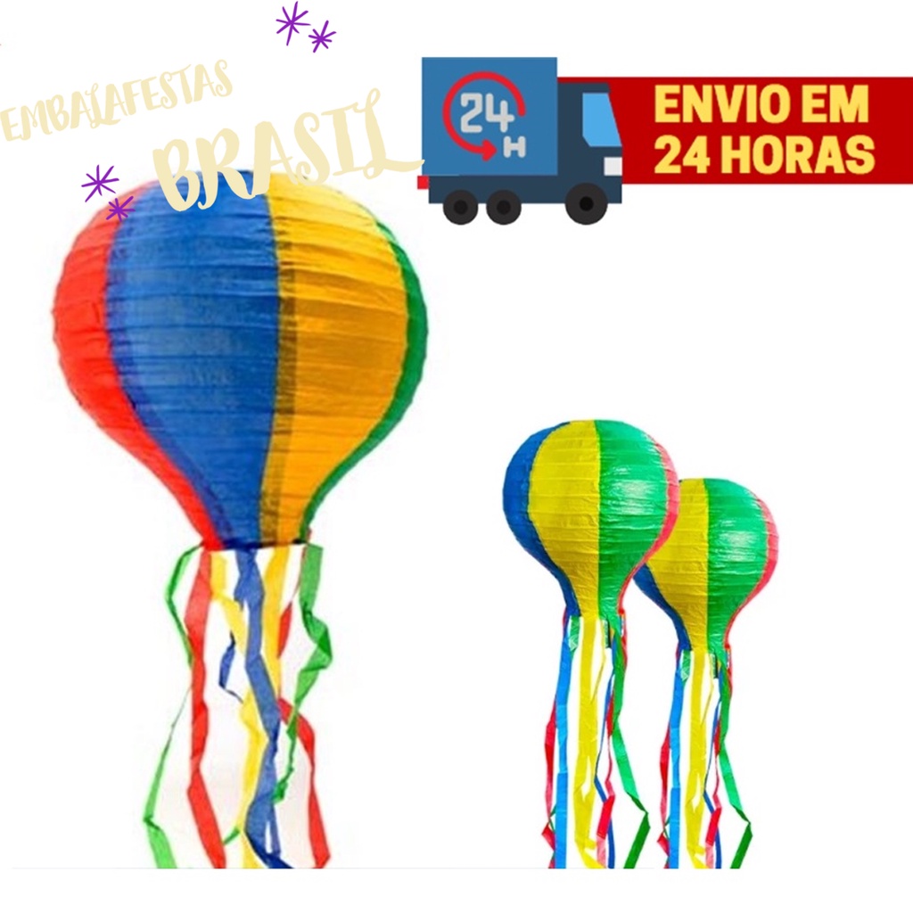Enfeite Festa Junina Balão Papel Colorido Com Franja Decoração Arraial