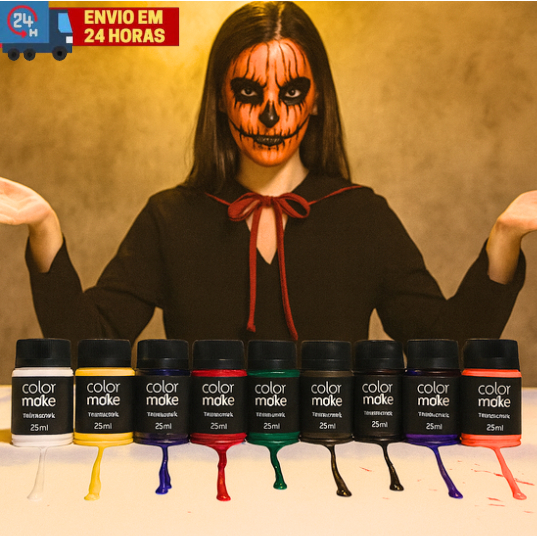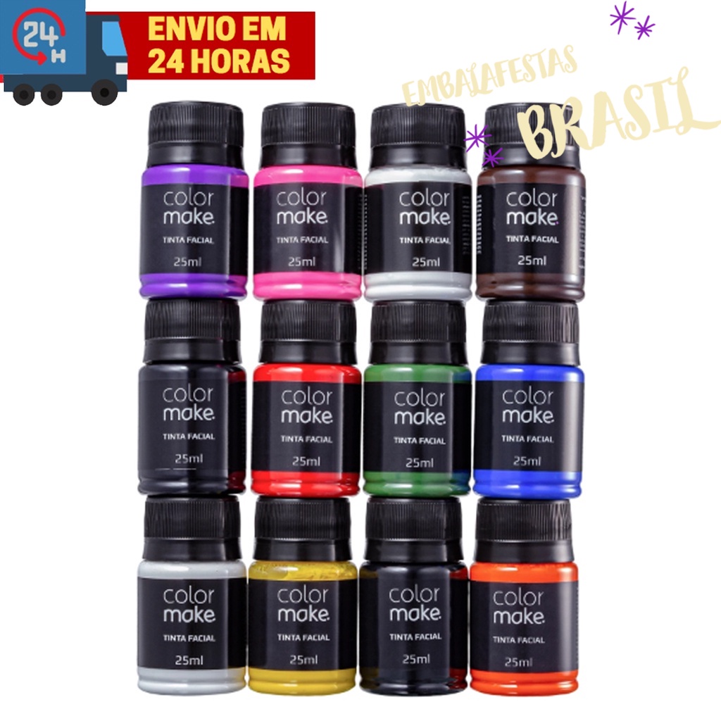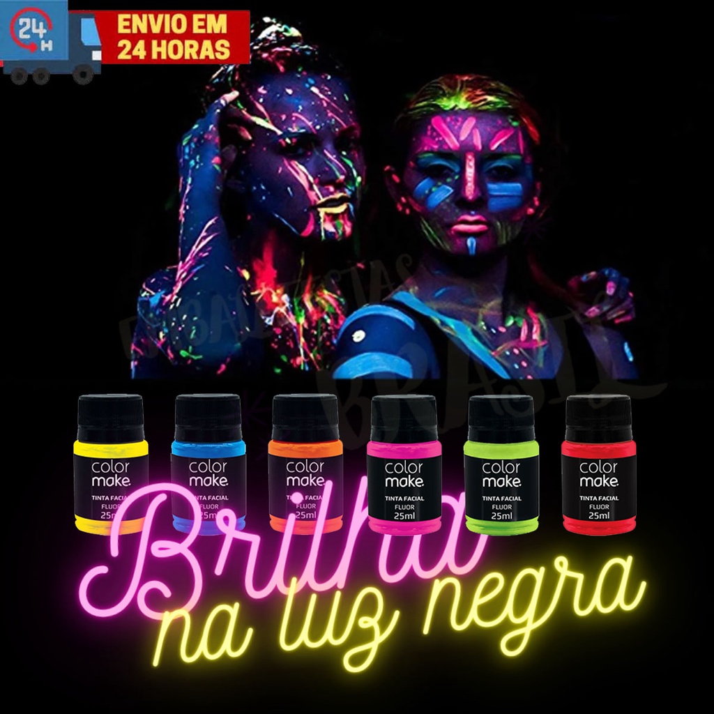 Tinta Liquida Facial ColorMake 25 ml Neon ou Cremosa Carnaval Maquiagem Cosplay Fantasias Halloween