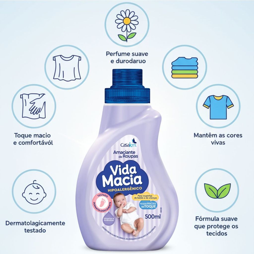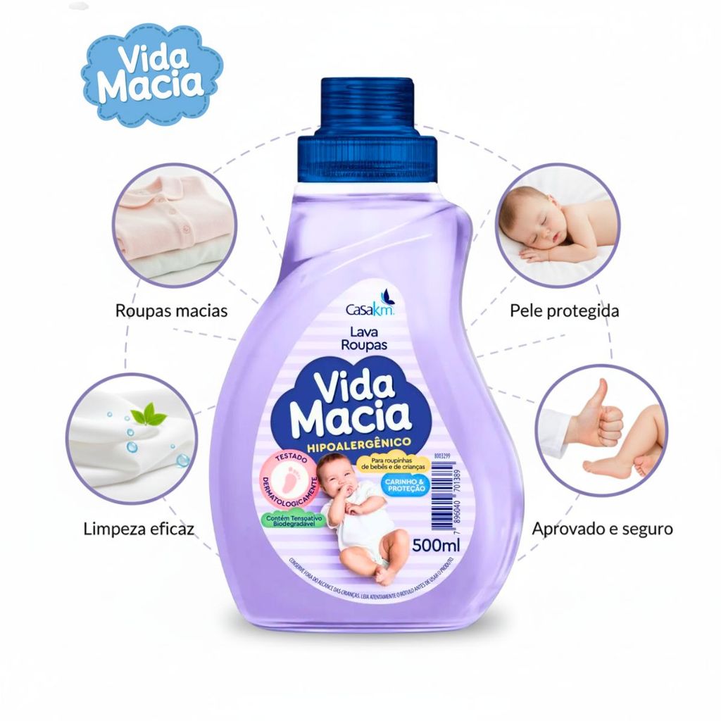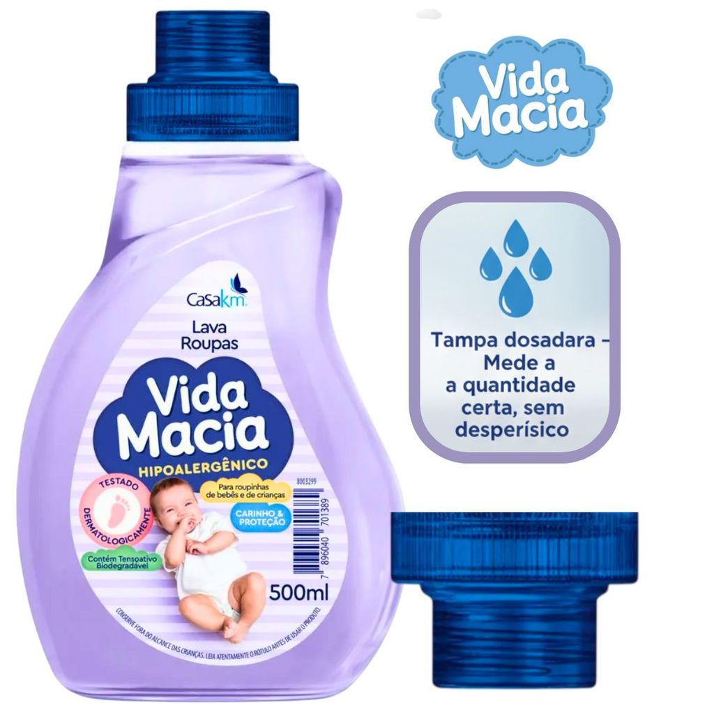 Kit Lava Roupas Líquido e Amaciante de Bebê Vida Macia 500ml