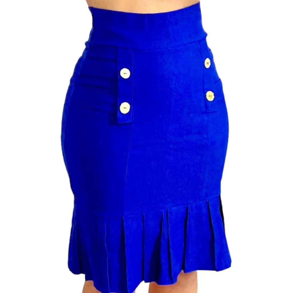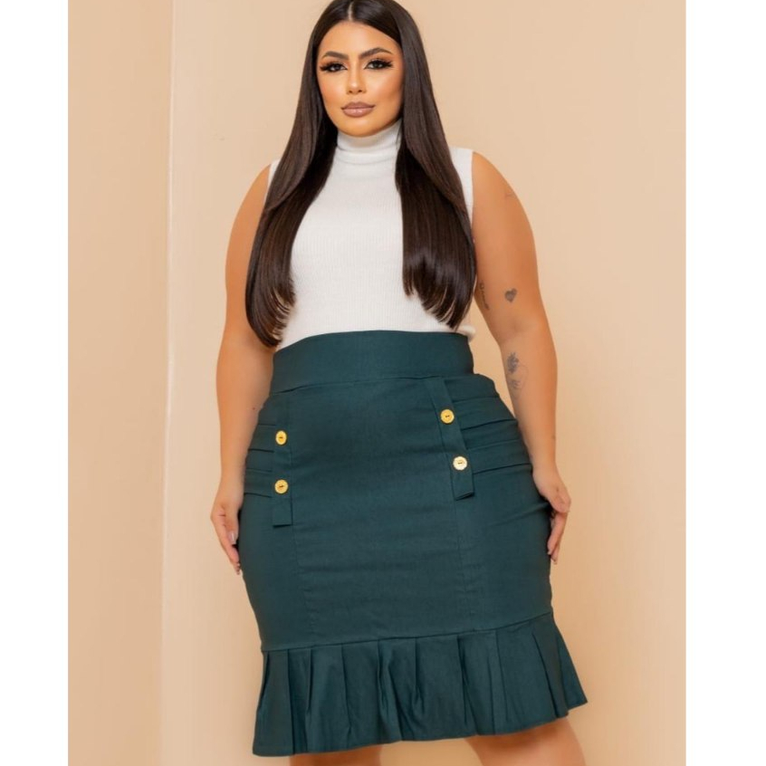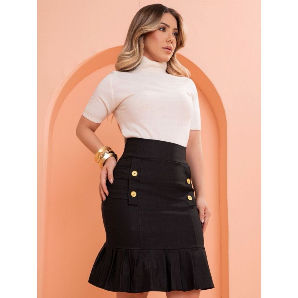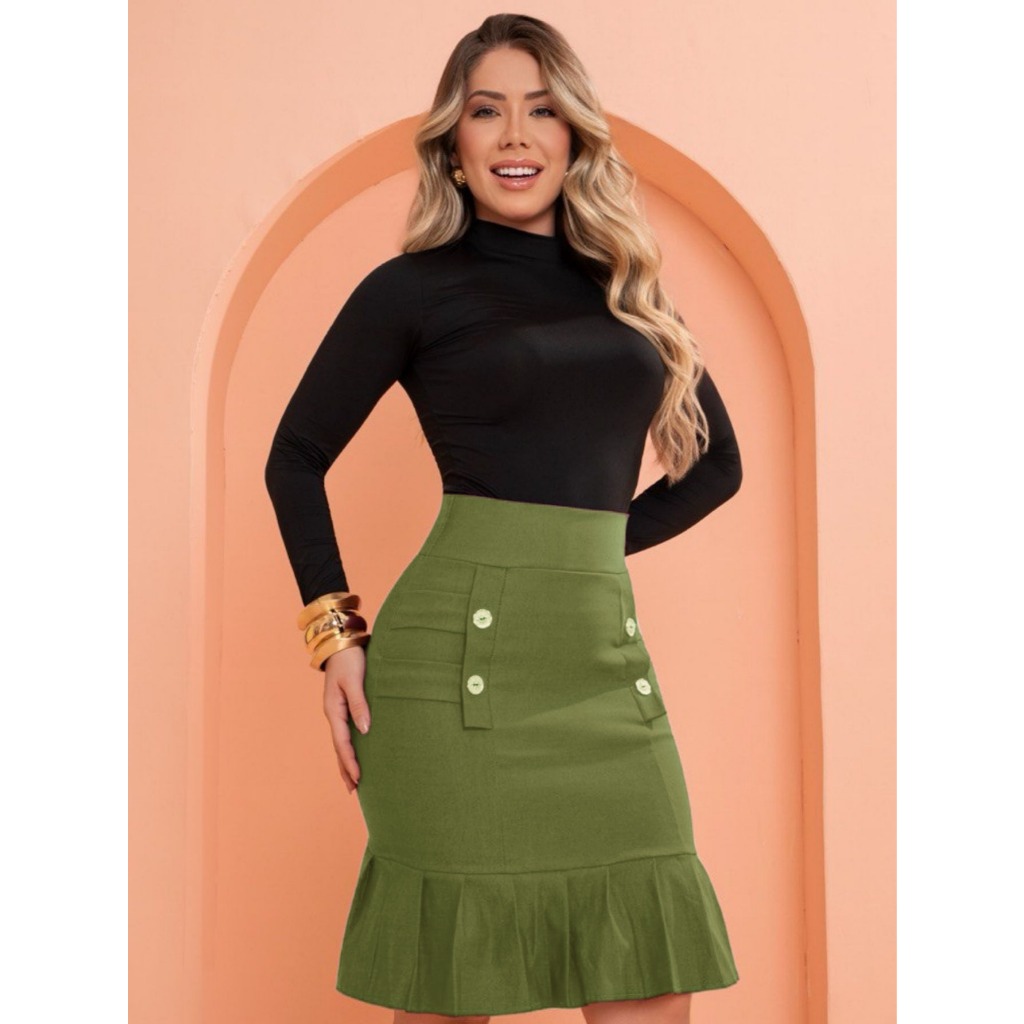 Saia alfaiataria Feminina Saia Mídi Evangélica Detalhe Botões E Babadinho Com Lycra